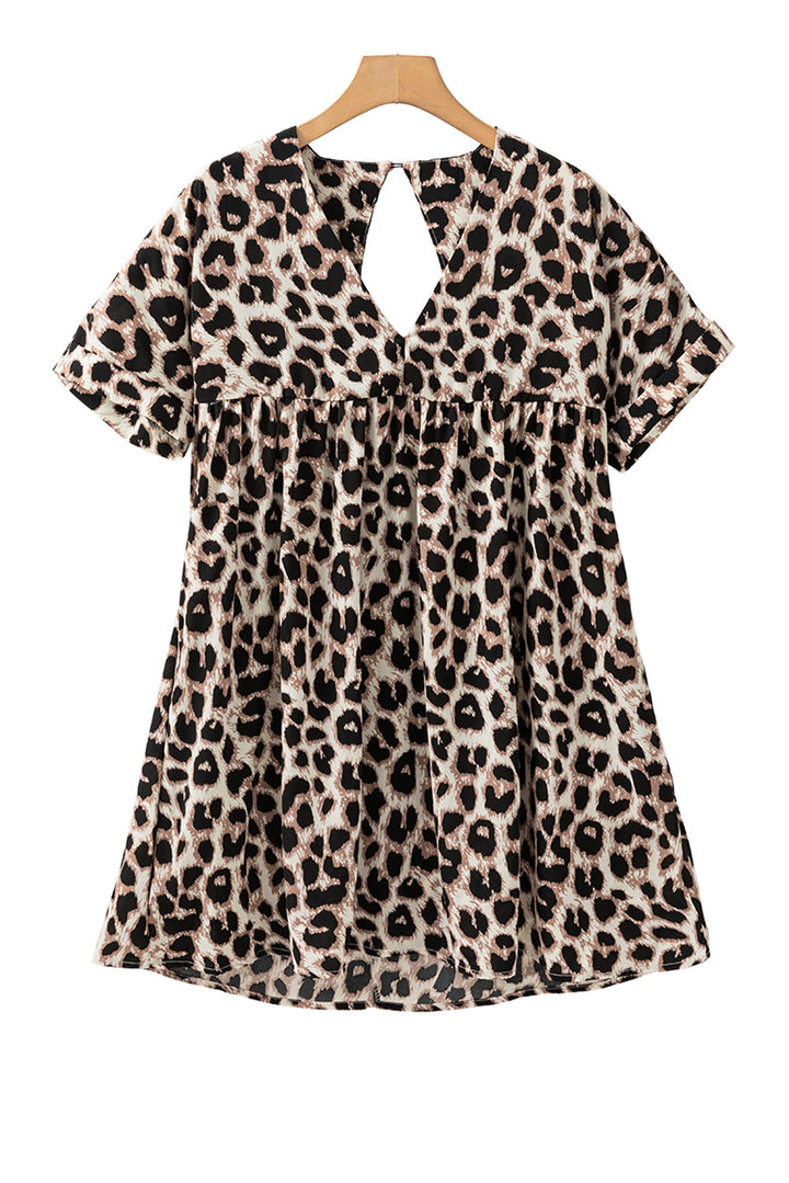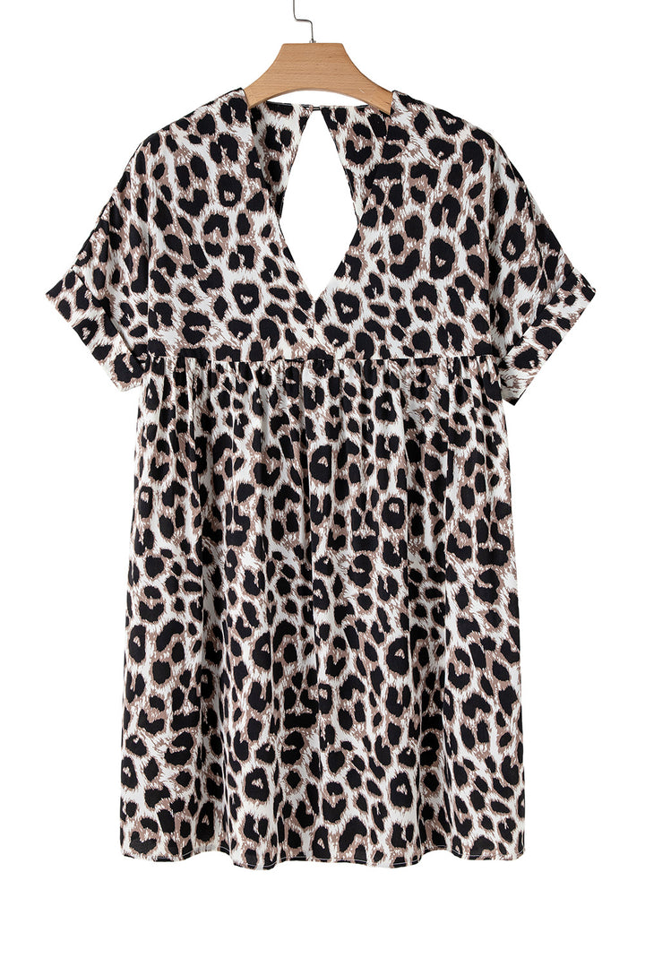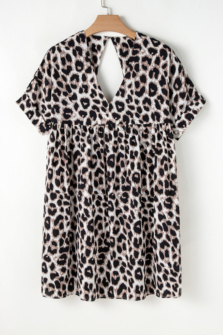 Khaki Cheetah Print Backless V Neck Loose Fit Mini Dress