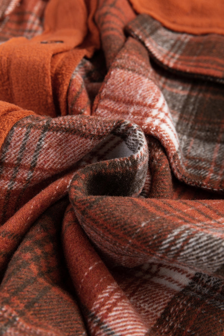 This colorblock shacket adds a modern and dynamic twist to the classic plaid pattern.