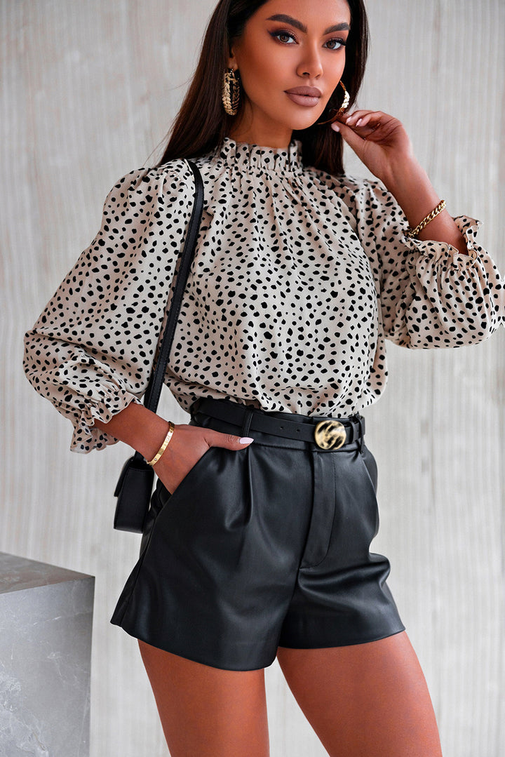 Frilled Neck 3/4 Sleeves Cheetah Blouse