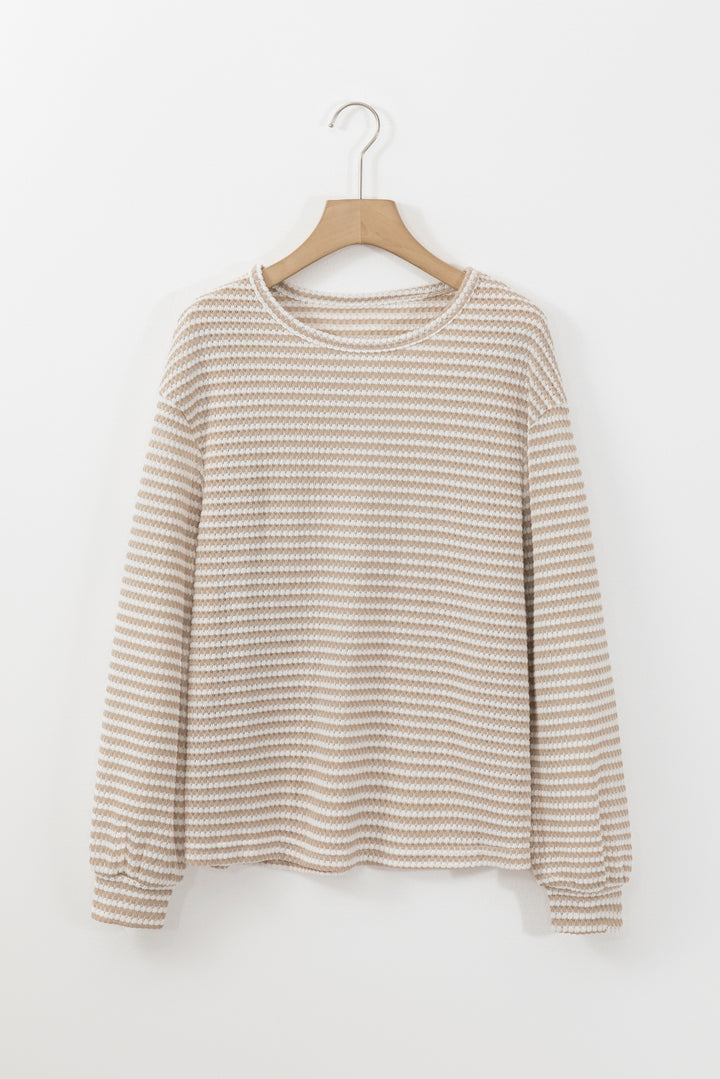 Stripe Round Neck Drop Shoulder Long Sleeve Top