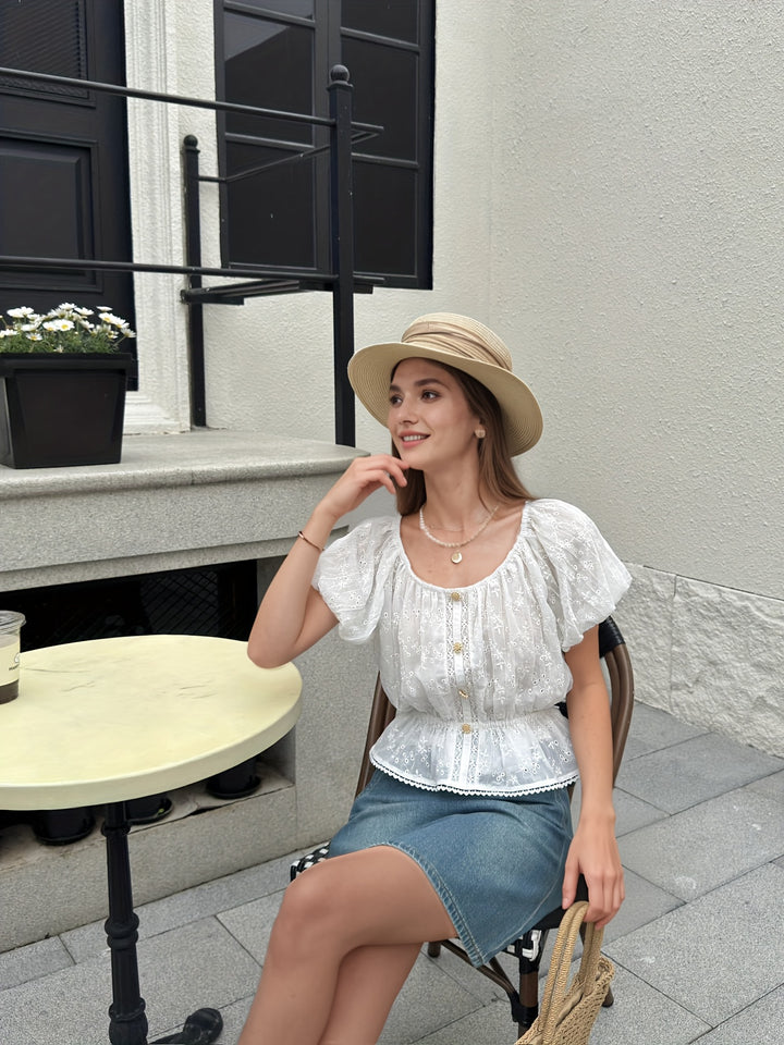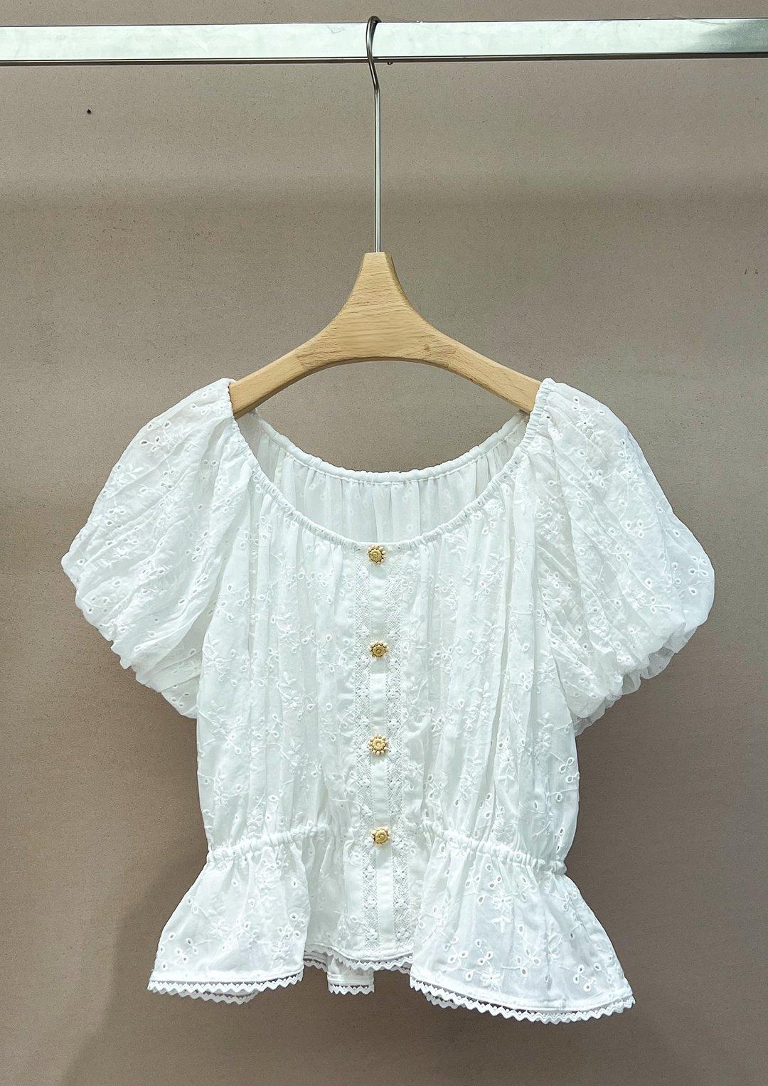 Featuring intricate floral cutwork embroidery that creates ethereal lace-like texture and breathable allure.