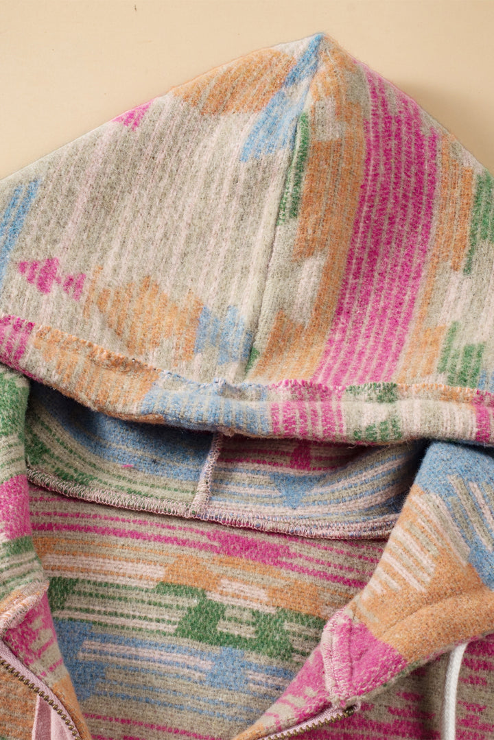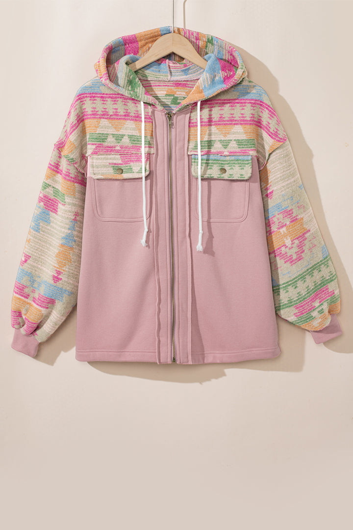 Aztec Patch Drawstring Hooded Zip Up Jacket
