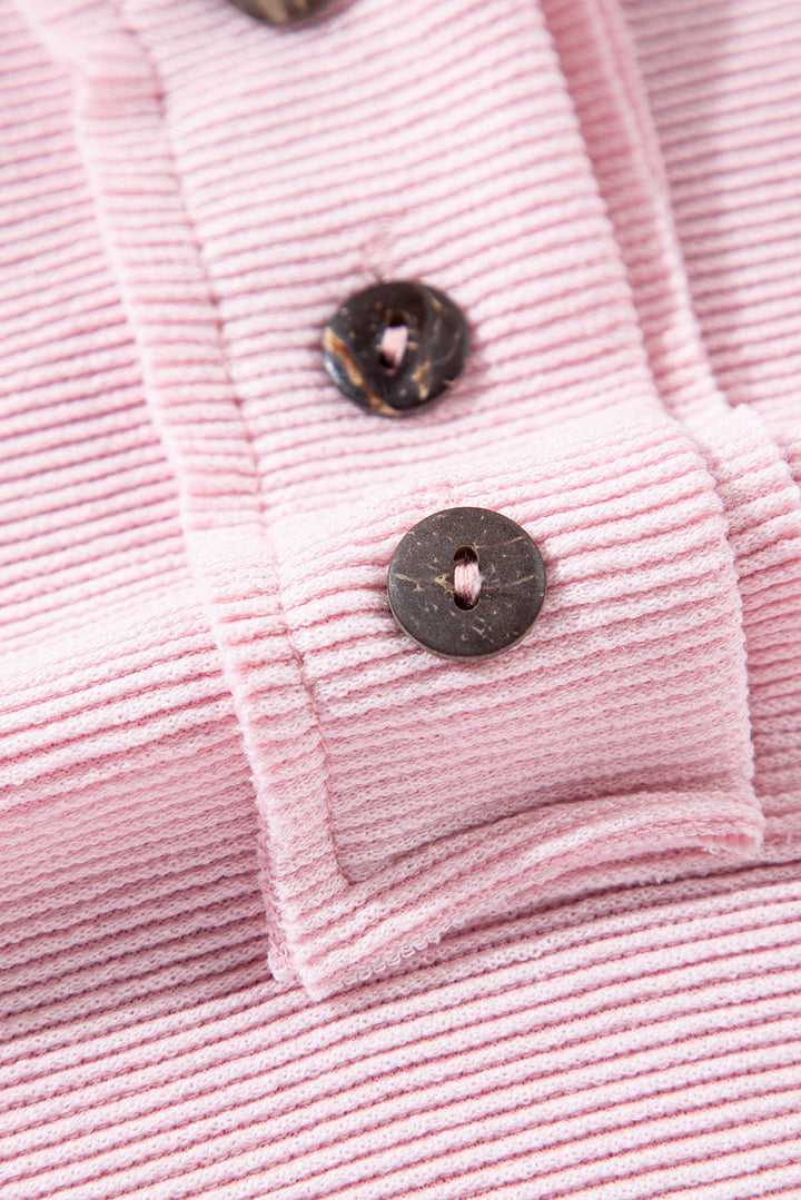 Chic details include buttons front, chest pocket and drop shoulder design.