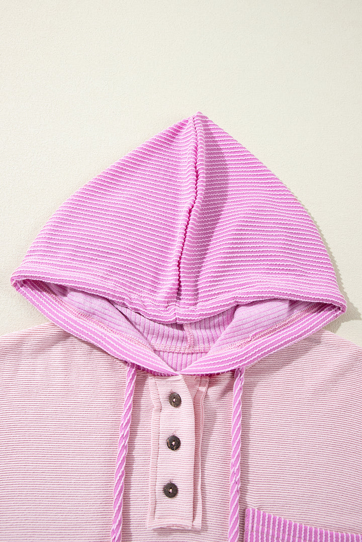 Corded Colorblock Patch Pocket Drawstring Hoodie
