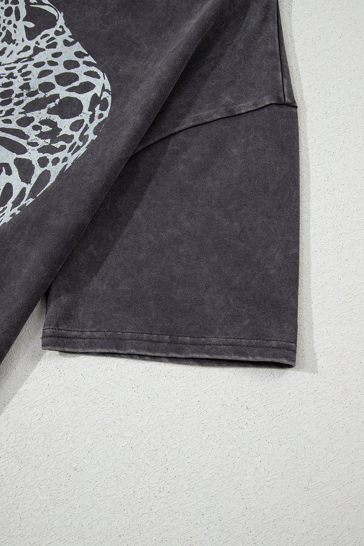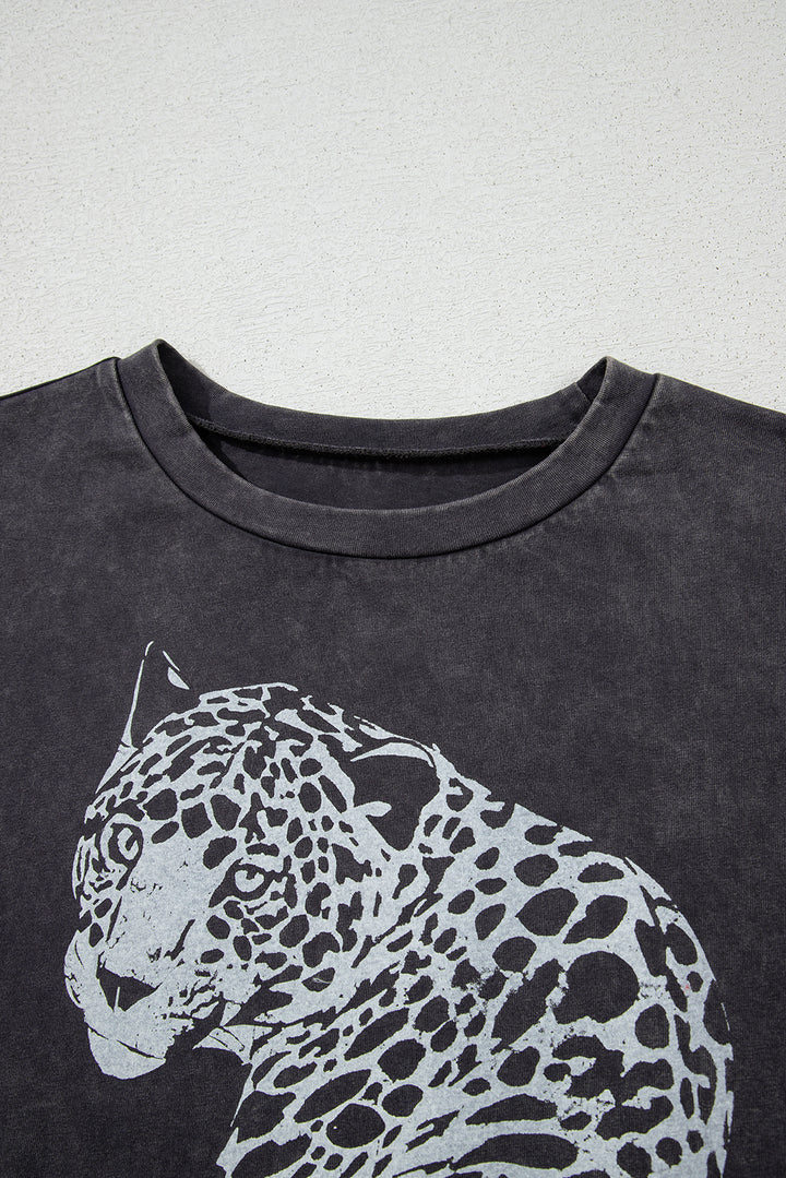 Medium Grey Vintage Cheetah Printed Mineral Wash Graphic Tee