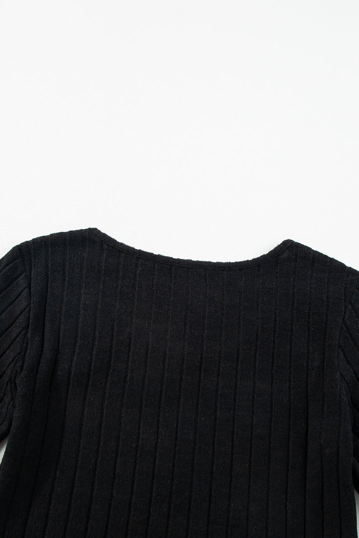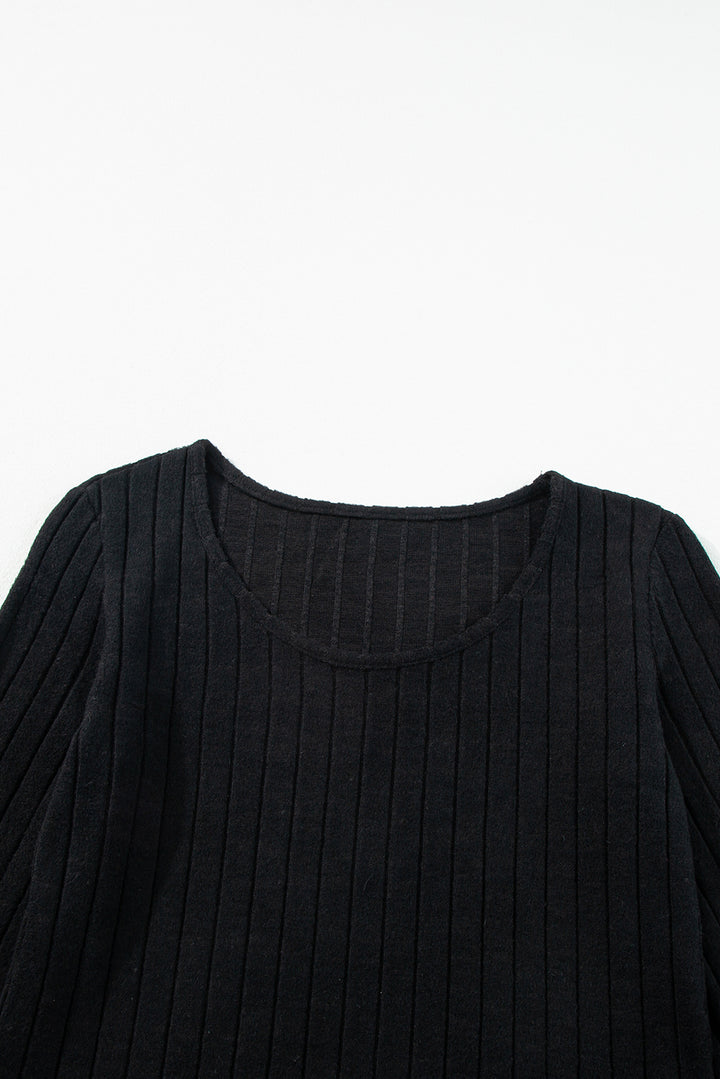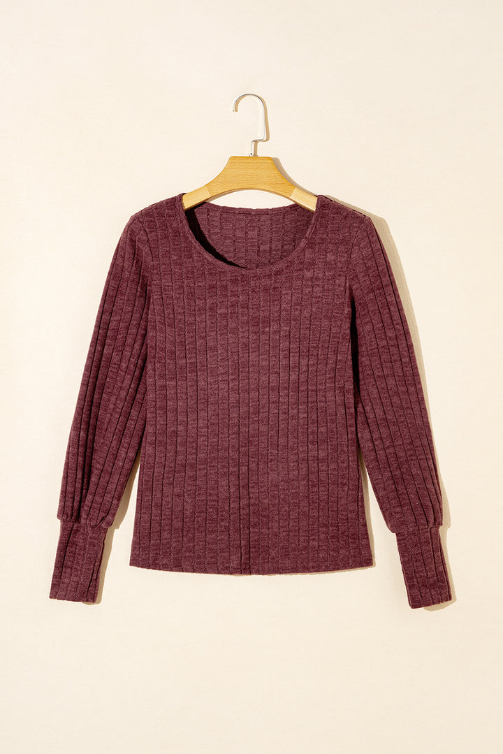 Ribbed Bishop Sleeve Round Neck Top