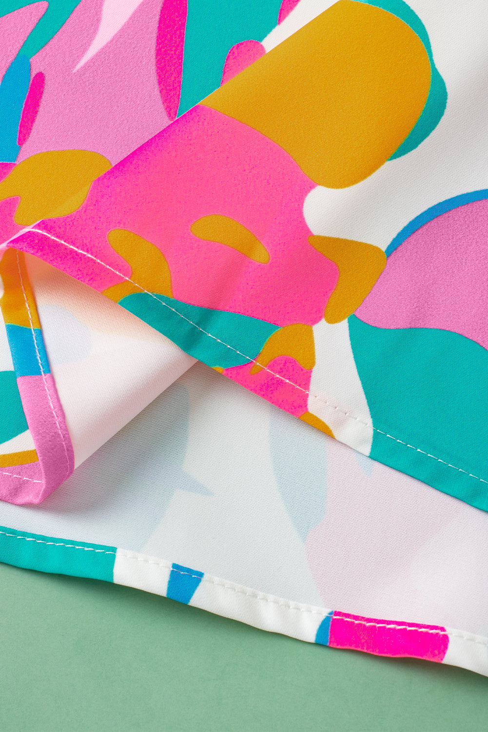 Abstract Print Notched Neck Flutter Sleeve Blouse