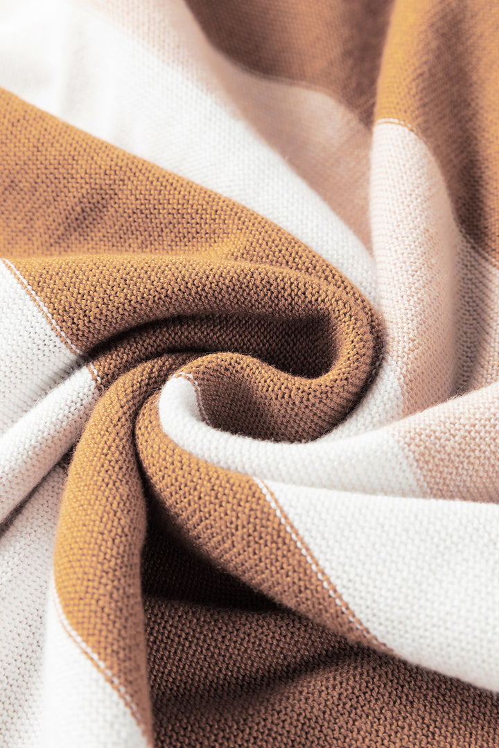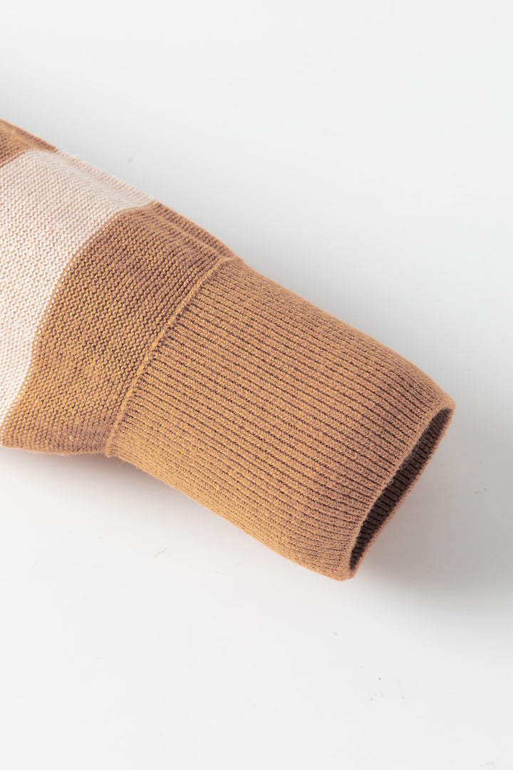 - The striped pattern adds a playful and dynamic element to this casual sweater