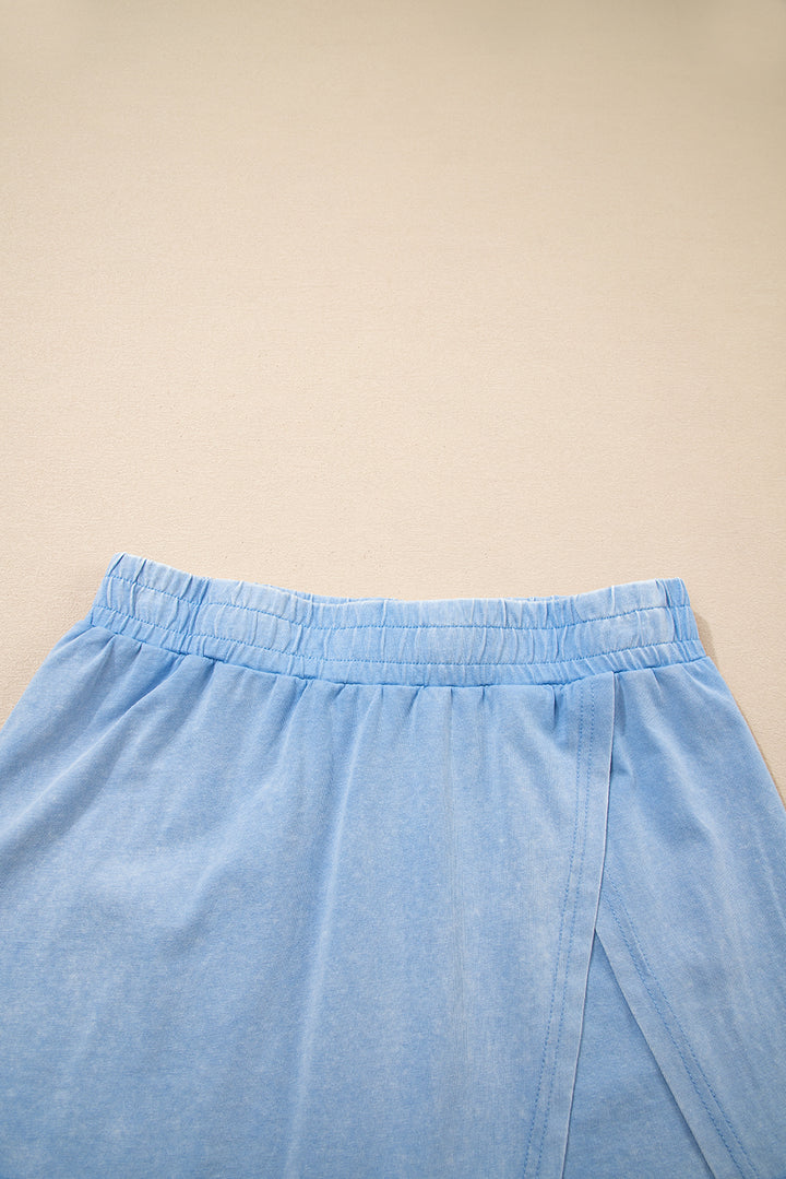 Myosotis 2 Pieces Mineral Wash Cotton Tank Top Lined Split Skirt Set