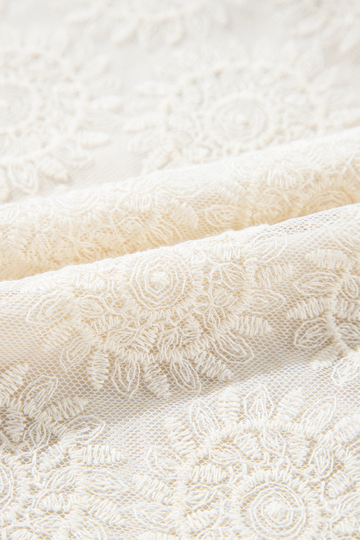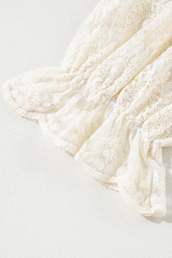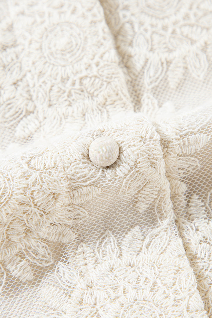 Flower Jacquard Button Back Ruffled 3/4 Sleeve Blouse