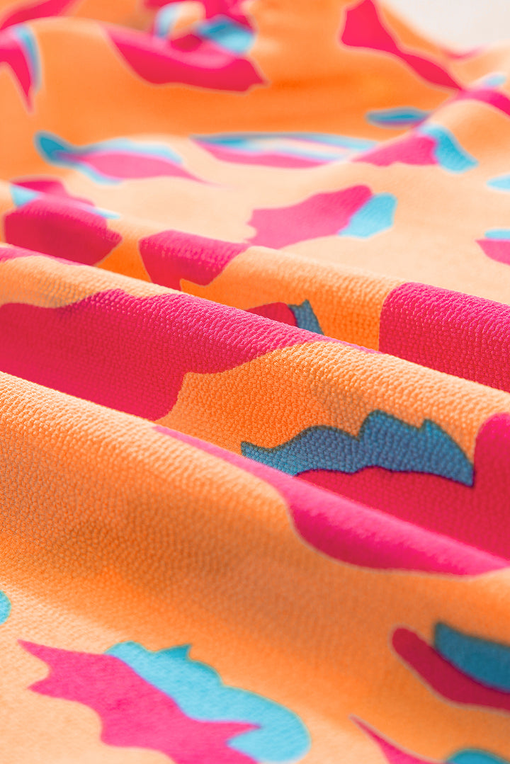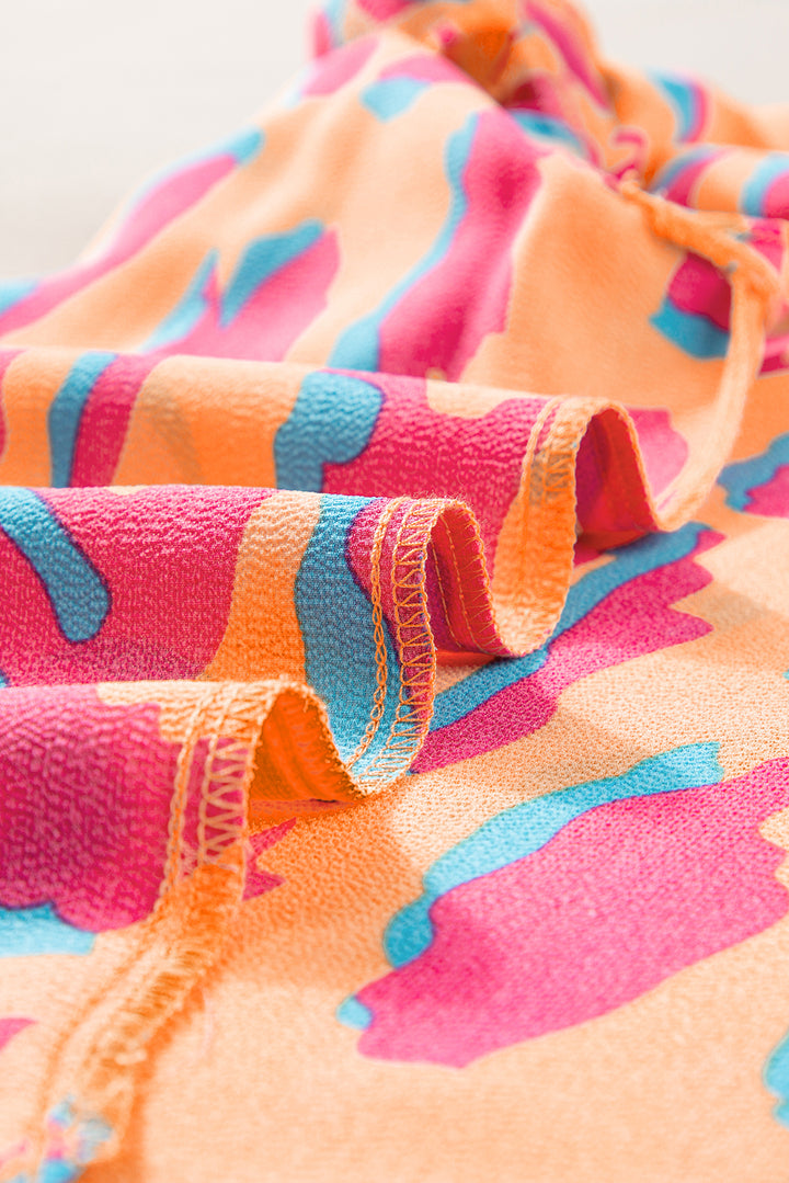 Abstract Print V Neck Ruffled Sleeve Blouse