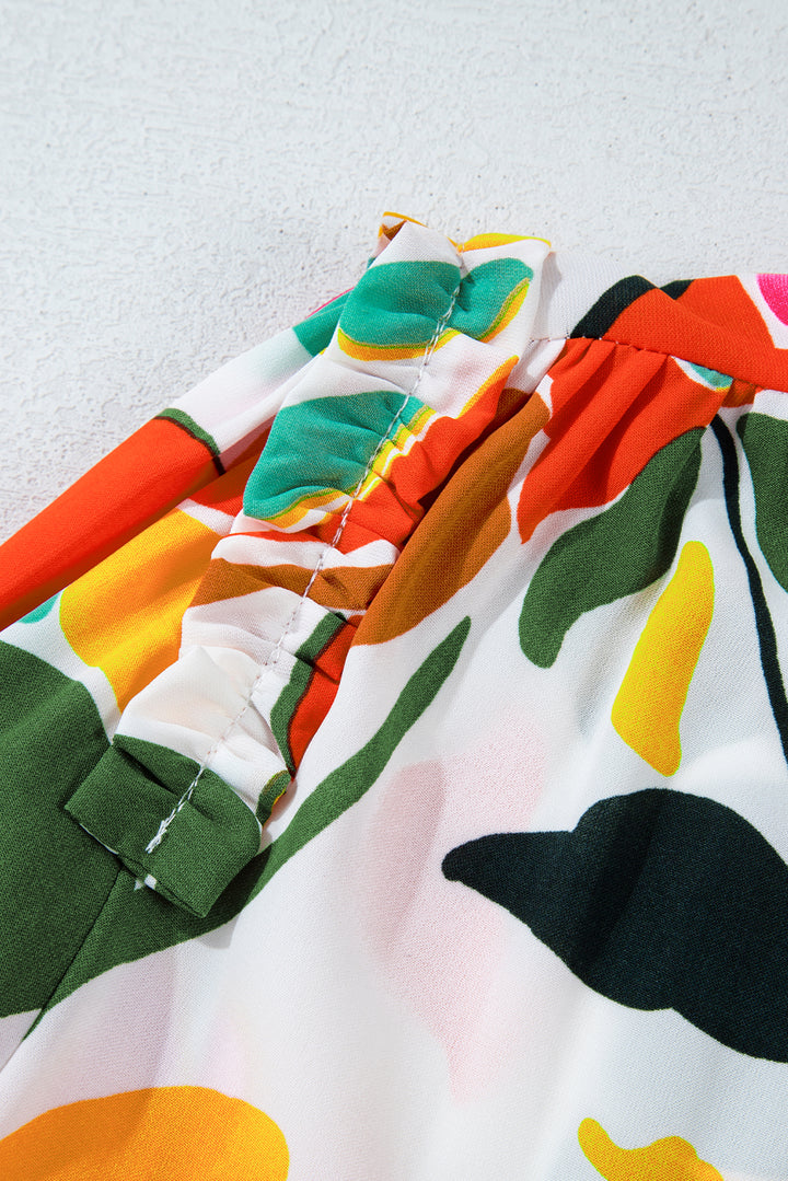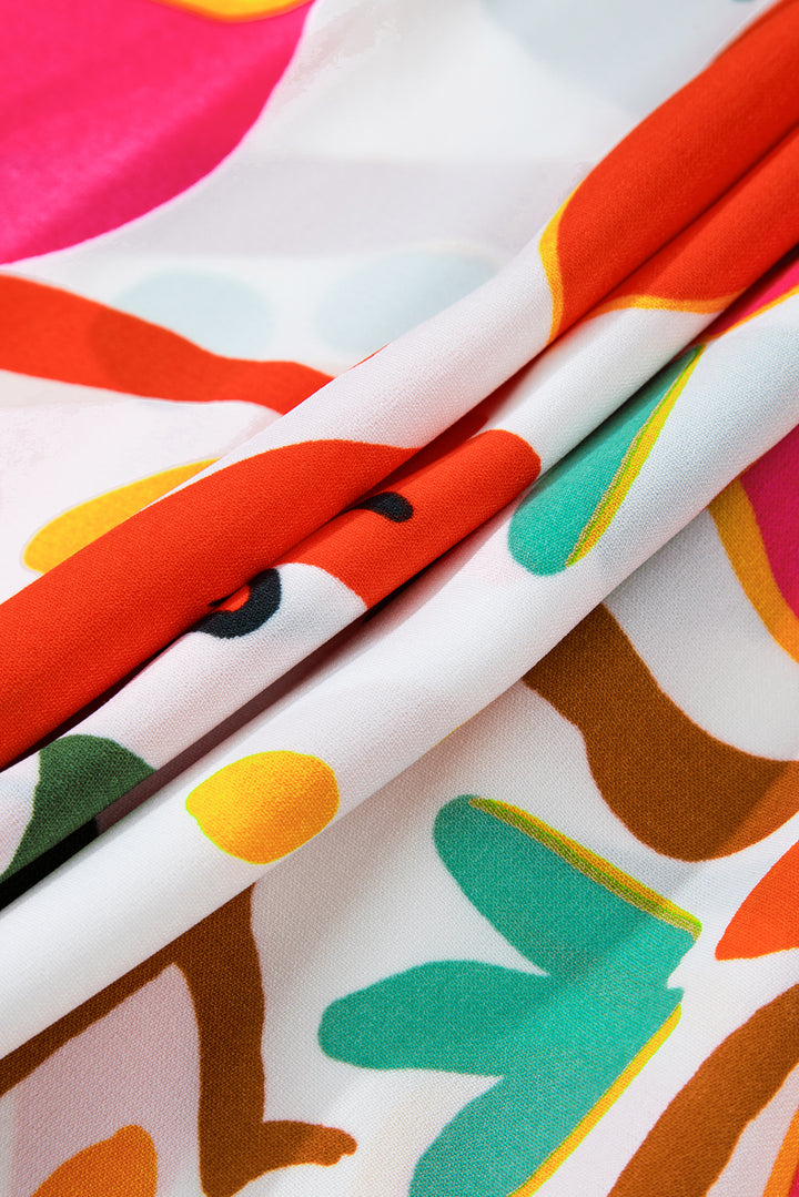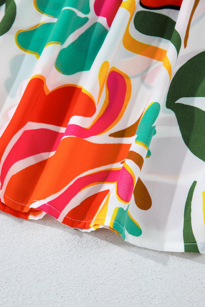 Floral Print Drawstring V Neck Tiered Plus Size Dress
