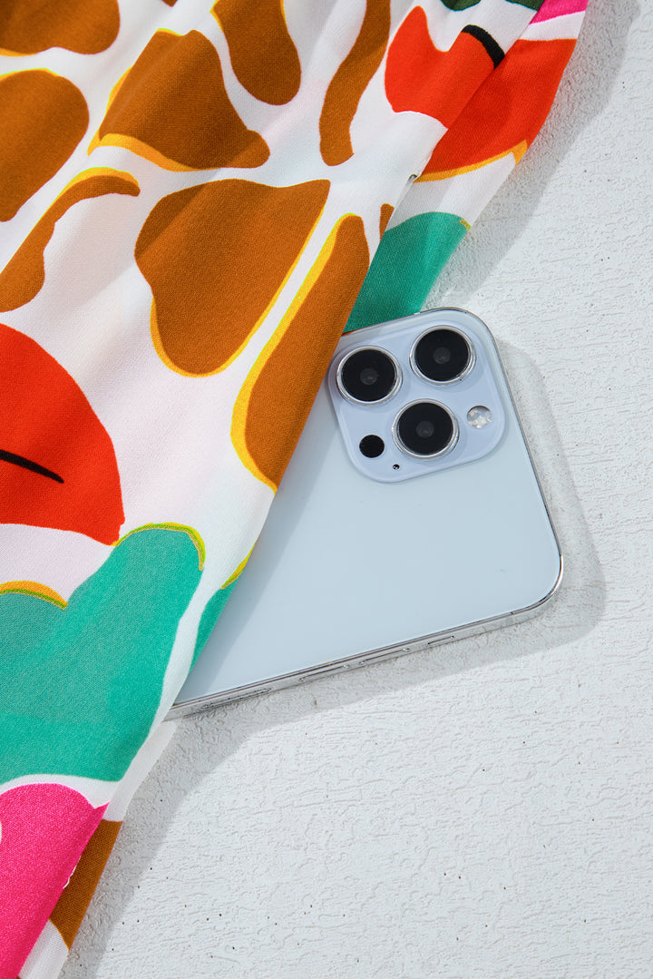 The dress is adorned with a beautiful floral print that brings a touch of nature elegance.
