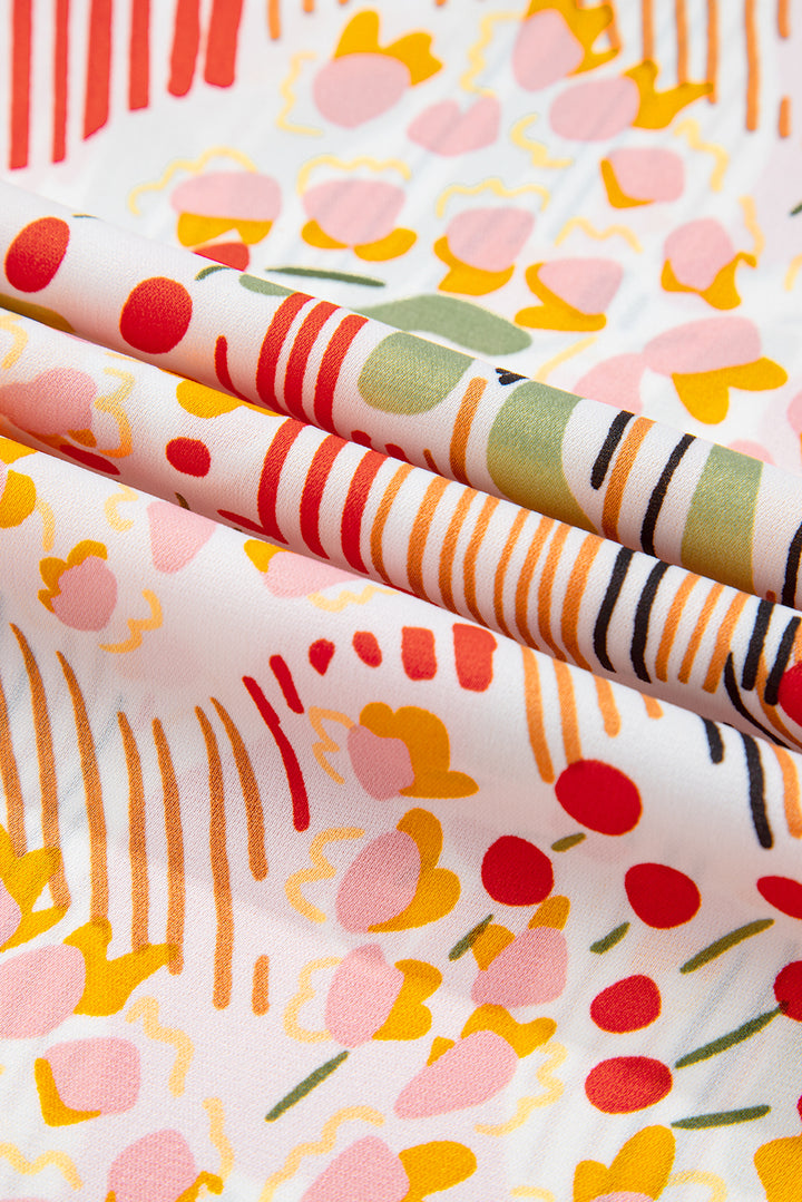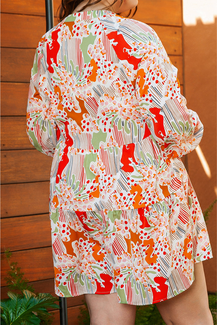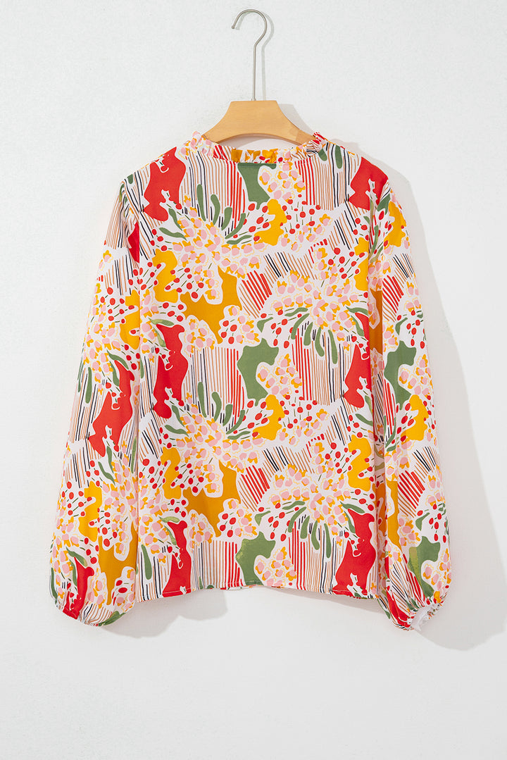 Printed Boho Print V Neck Ruched Bishop Sleeve Blouse