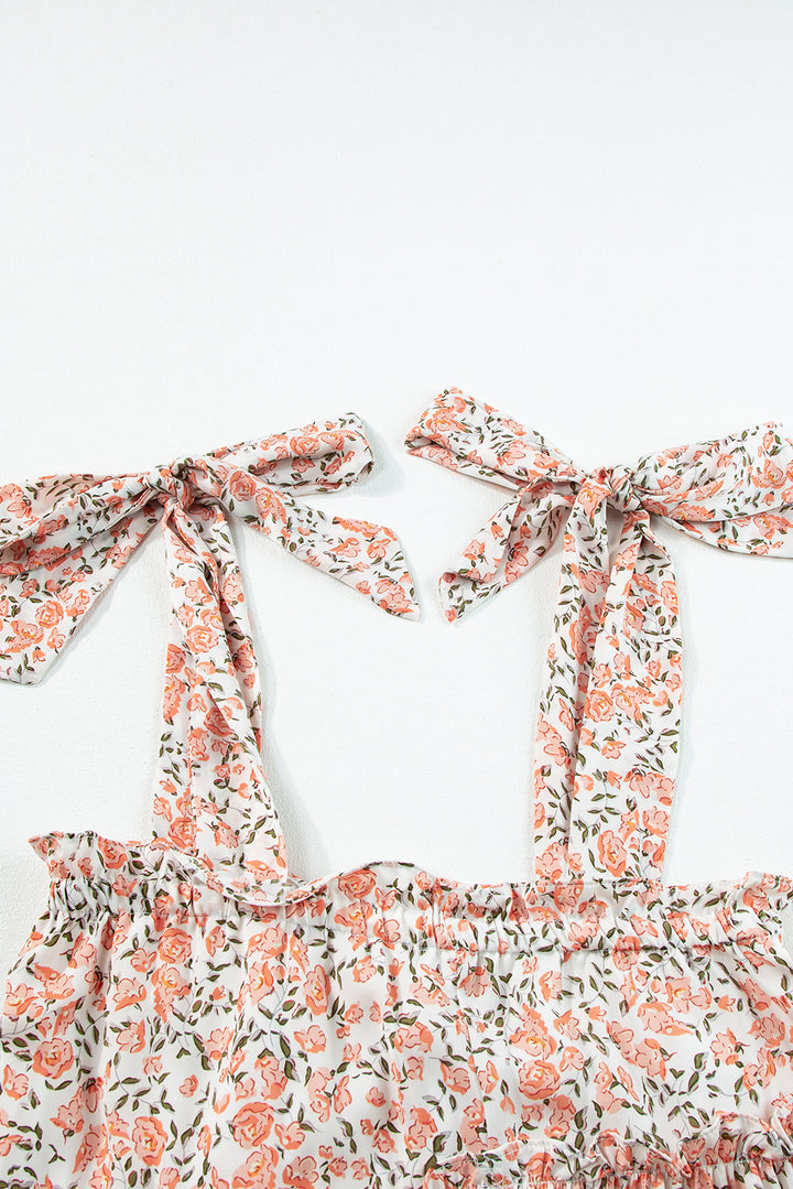 Rose Floral Knotted Straps Tiered Babydoll Dress