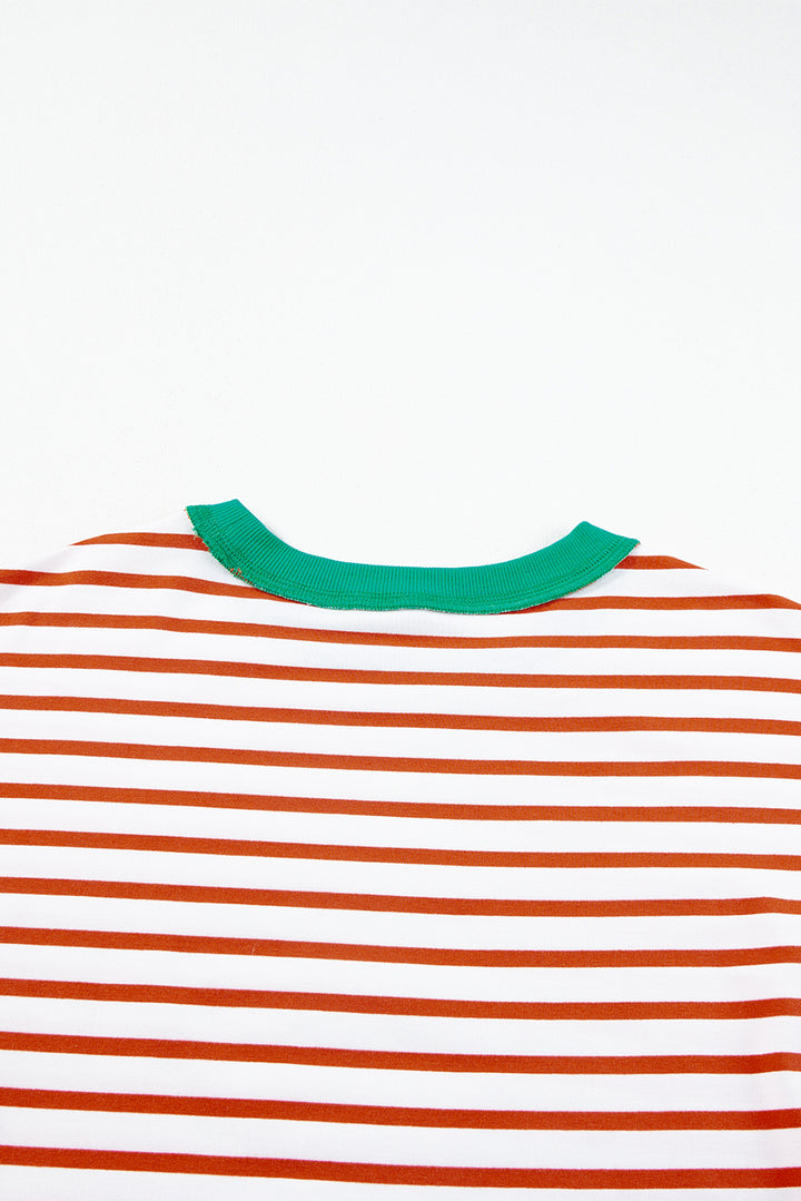 Stripe Oversized Contrast Trim Exposed Seam High Low T Shirt