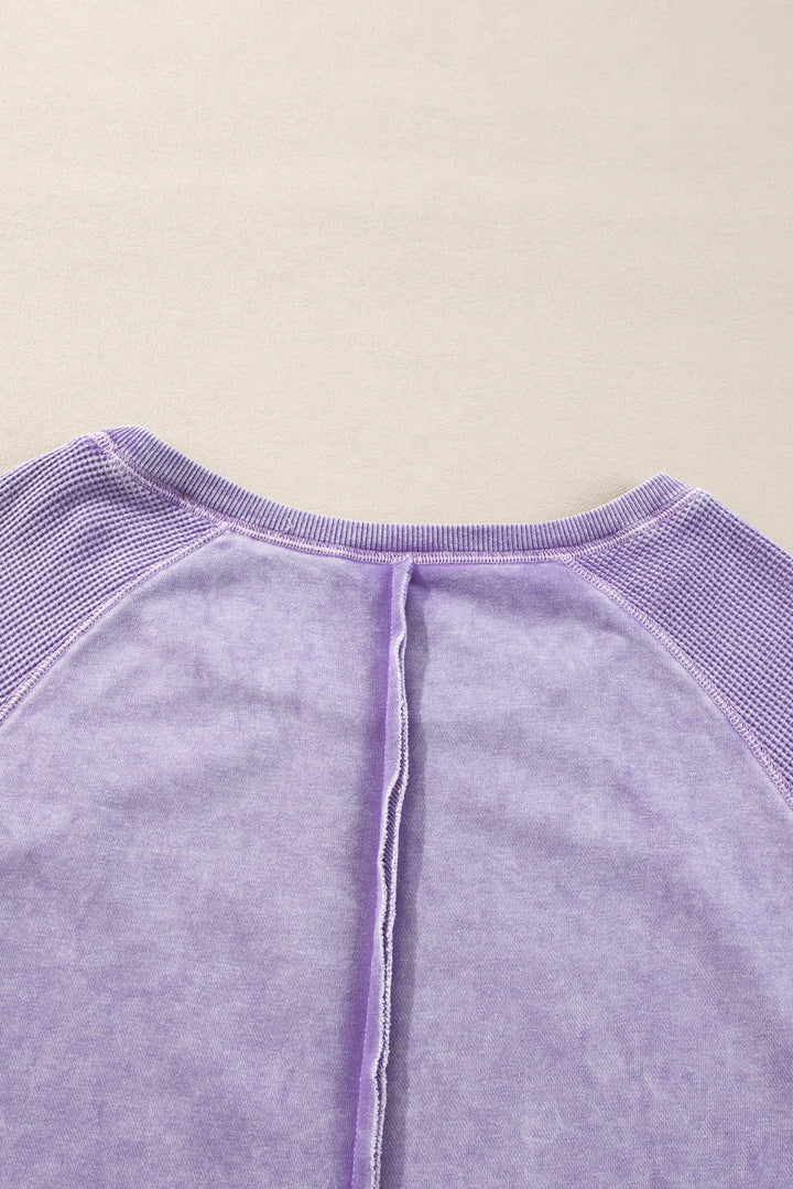 Solid Waffle Knit Patchwork Raglan Sleeve Sweatshirt