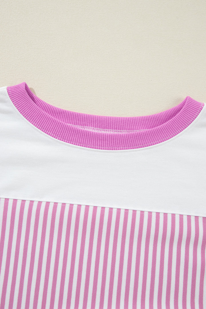 Striped Patchwork 3/4 Sleeve Oversize Top