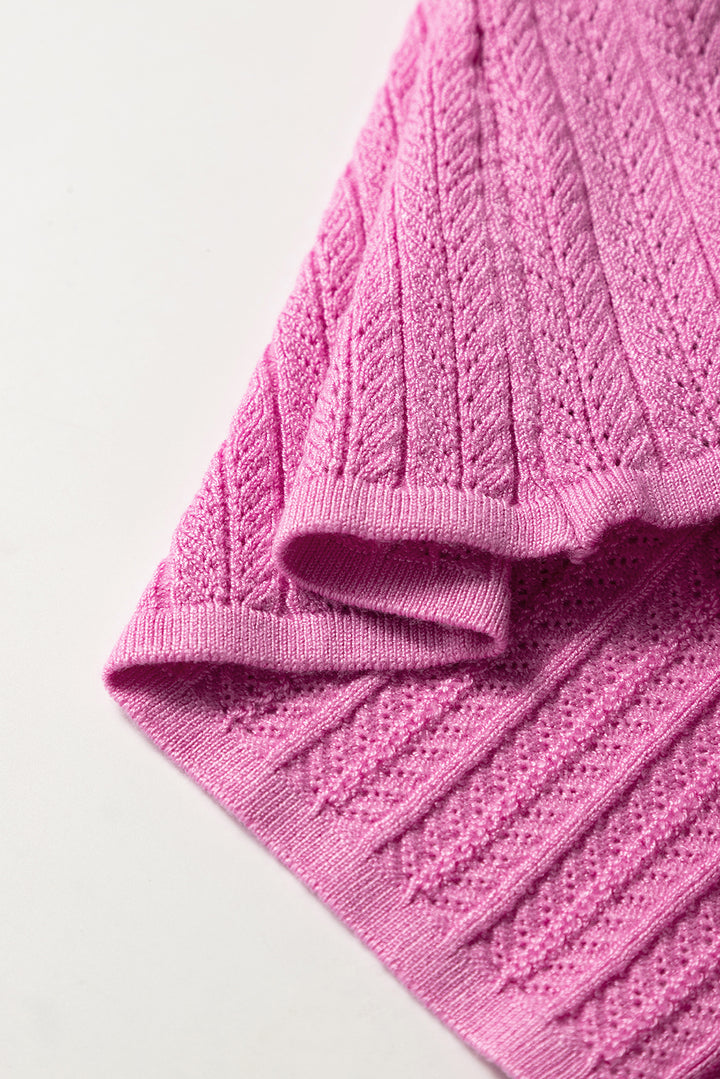 Phalaenopsis Textured Square Neck Half Sleeve Knitted Top