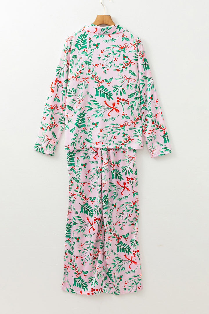 Christmas Berries Plant Print Satin Long Sleeve Pajama Set