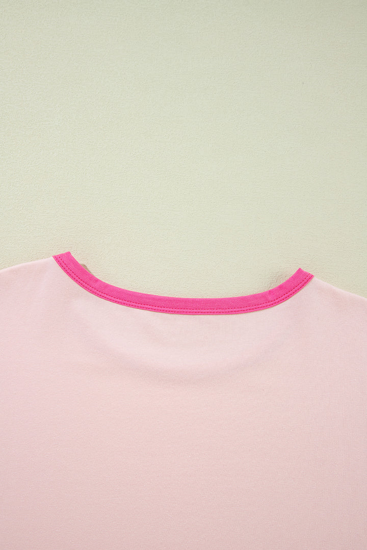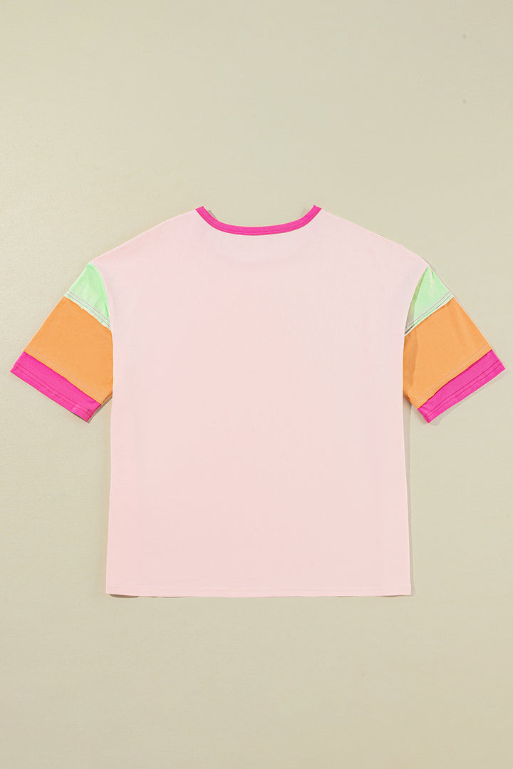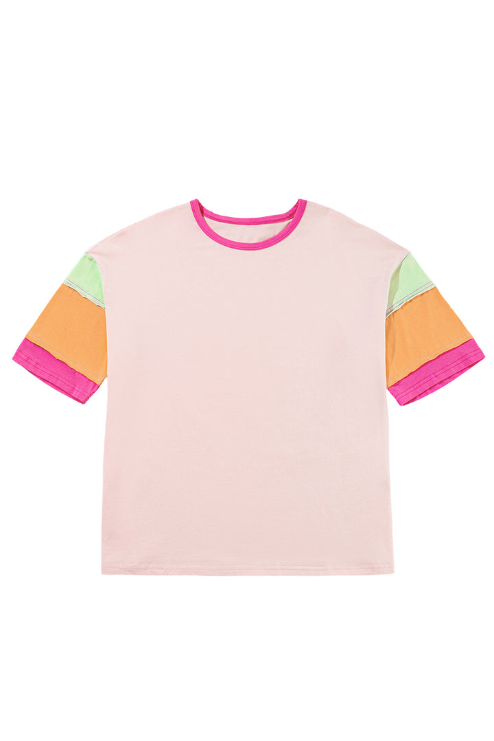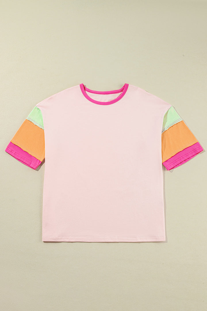 Color Block Stitching Sleeve Round Neck Oversize Top
