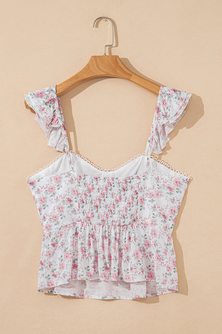 Pink Floral Flutter Peplum Tank Top
