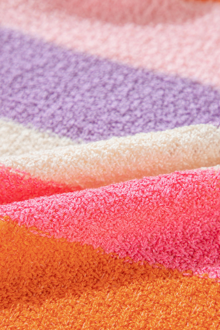 Pink Oversized Colorblock V Neck Hooded Sweater