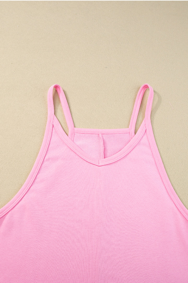 Pink Sleeveless Pocketed V Neck Jersey Romper