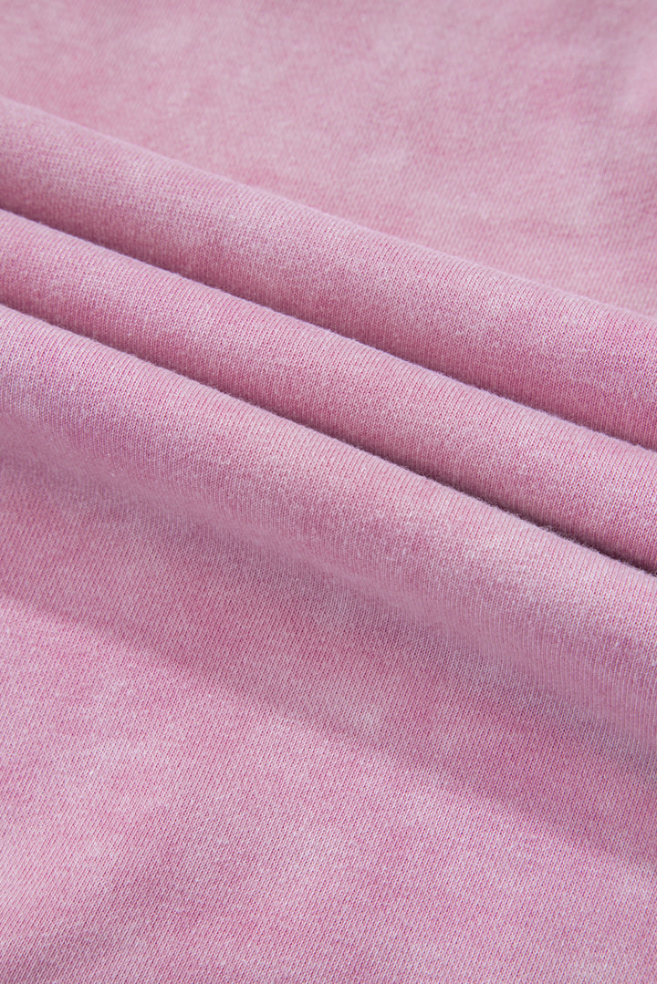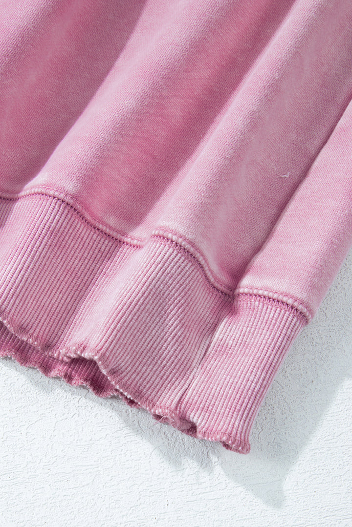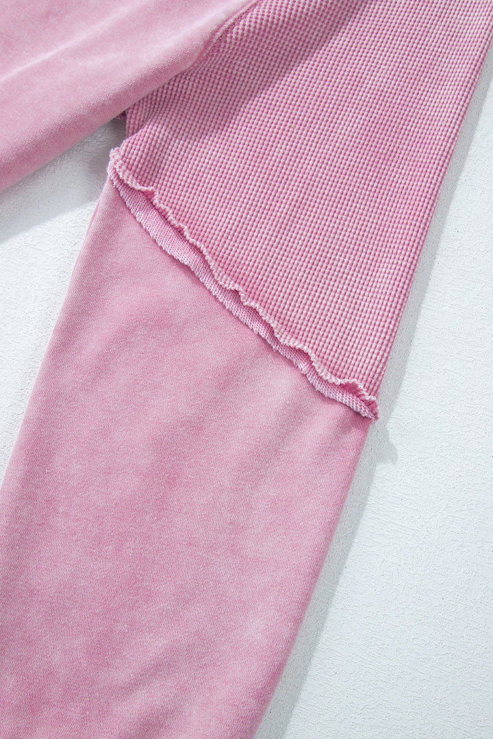 Pink Solid Waffle Knit Patchwork Raglan Sleeve Sweatshirt