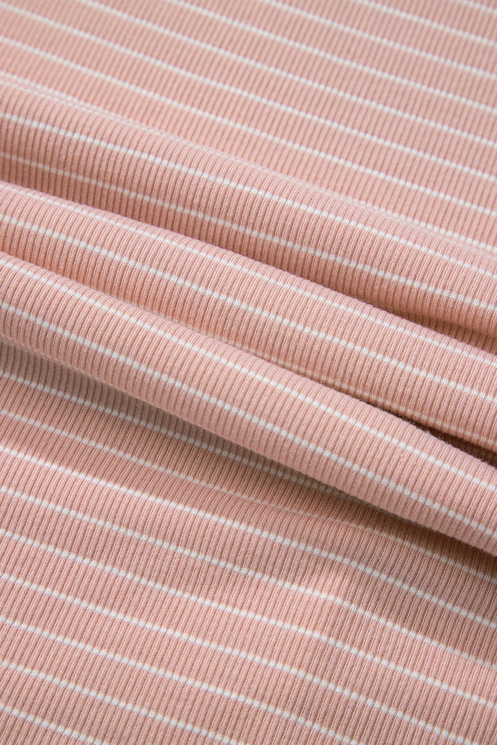 Pink Stripe Cowl Neck Side Slits Loose Fit Long Sleeve Top