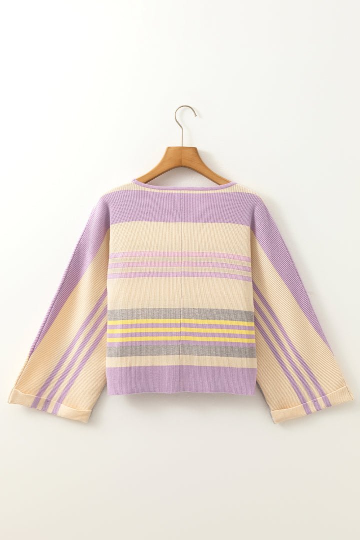 Purple Stripe Borderline Rib Knit Cuffed Dolman Sleeve Sweater