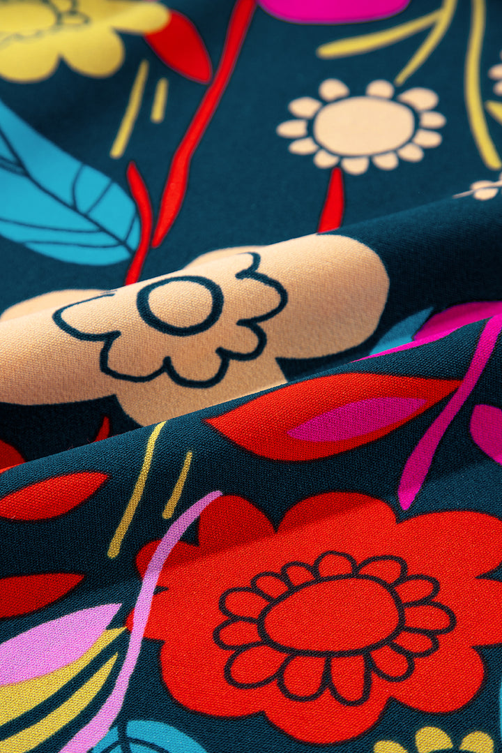Elegant and charming with exclusive mix tropical print and ruffled design