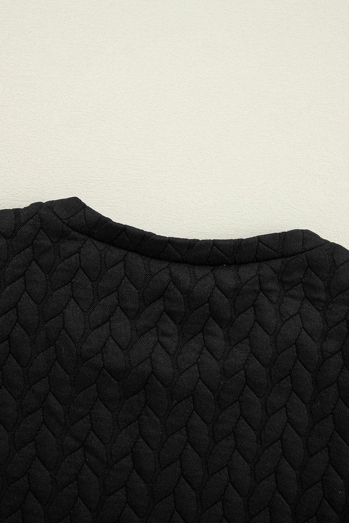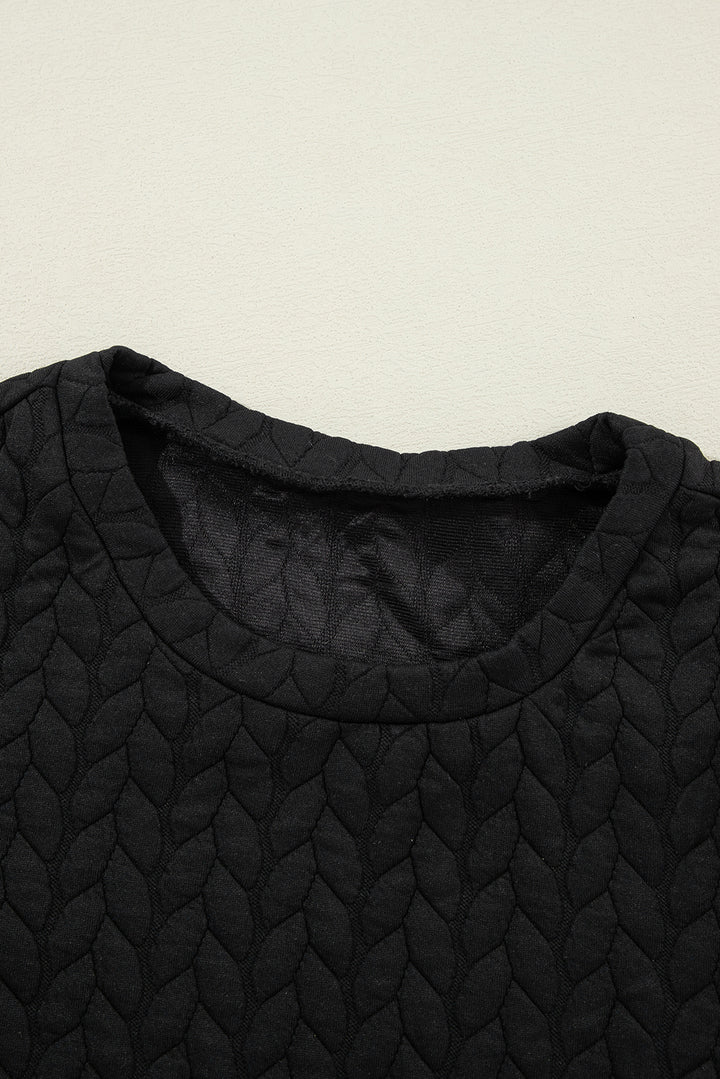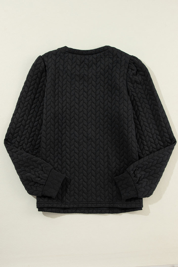 Rose Red Cable Textured Puff Sleeve Sweatshirt