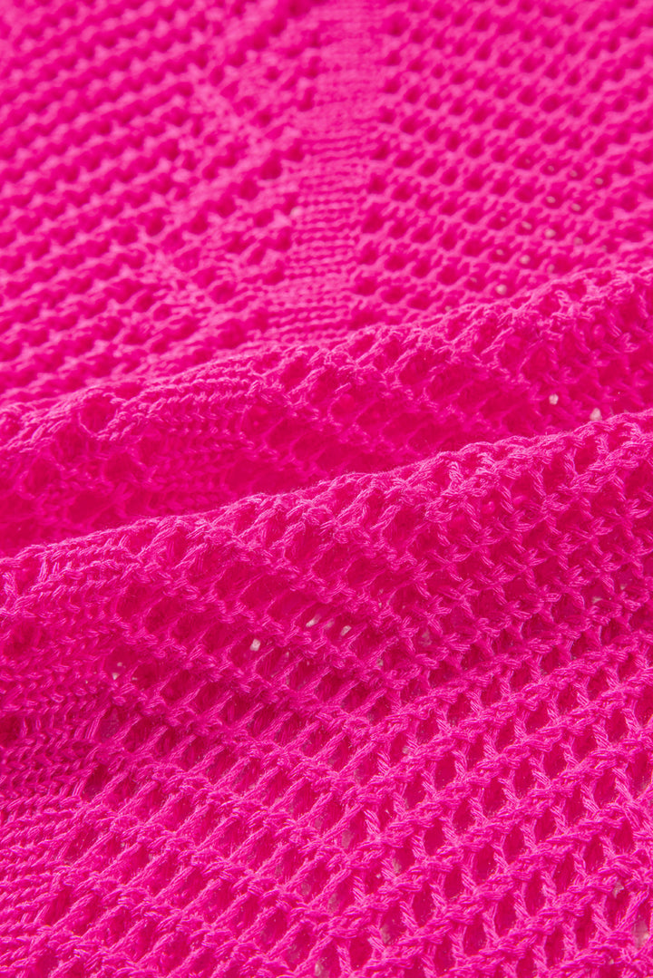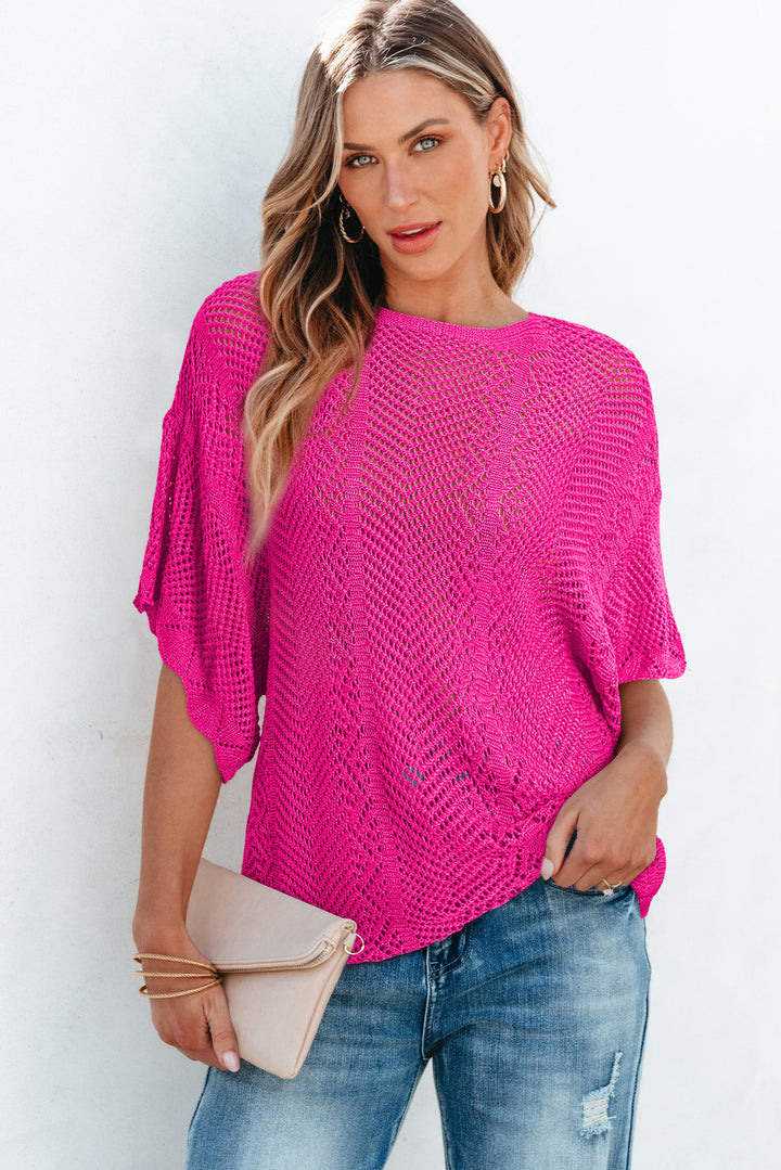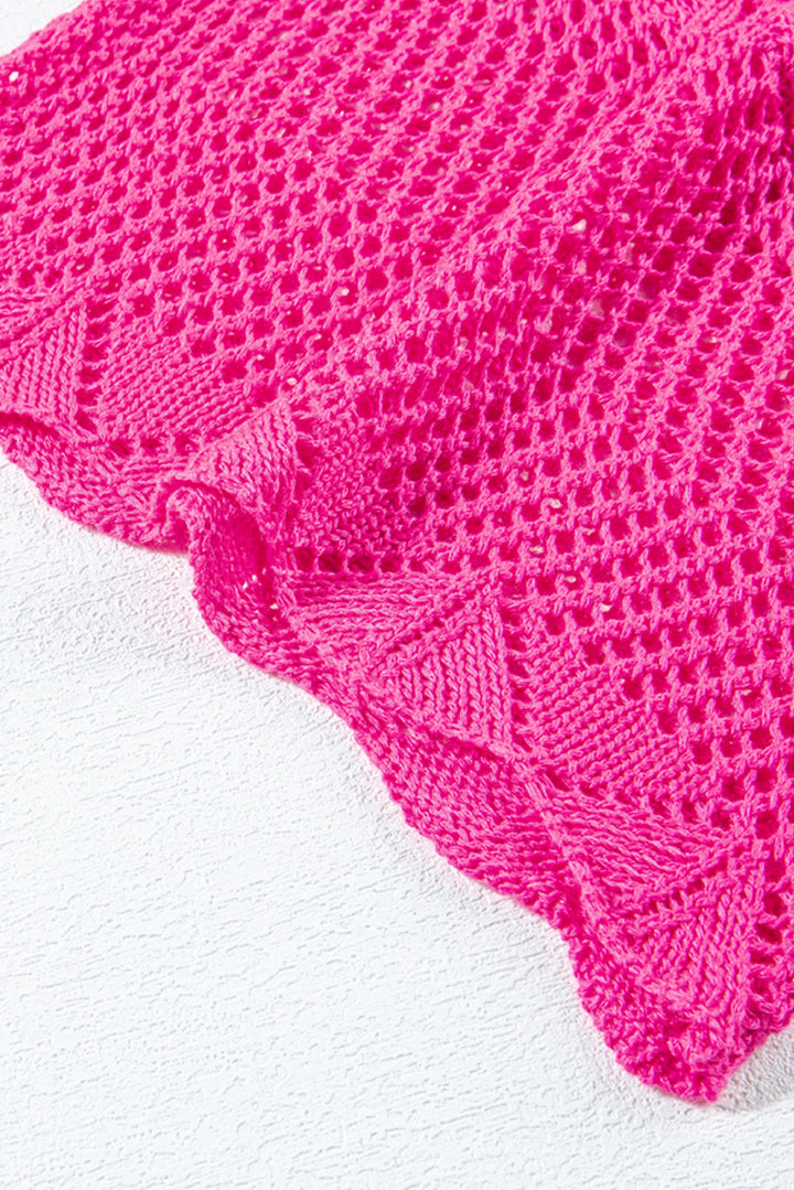 Rose Red Pointelle Knit Scallop Edge Short Sleeve Top