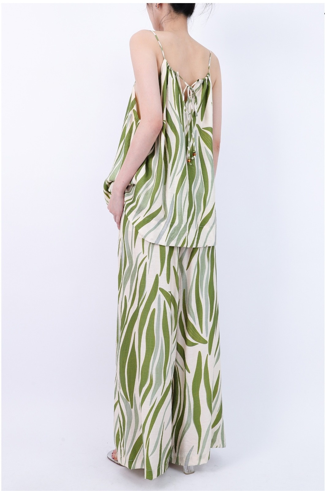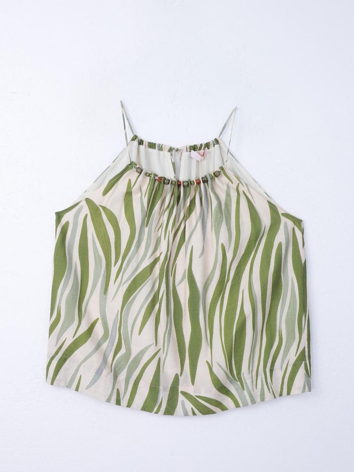 Scoop Neck Beaded Spaghetti Strap Back Lace-up Top