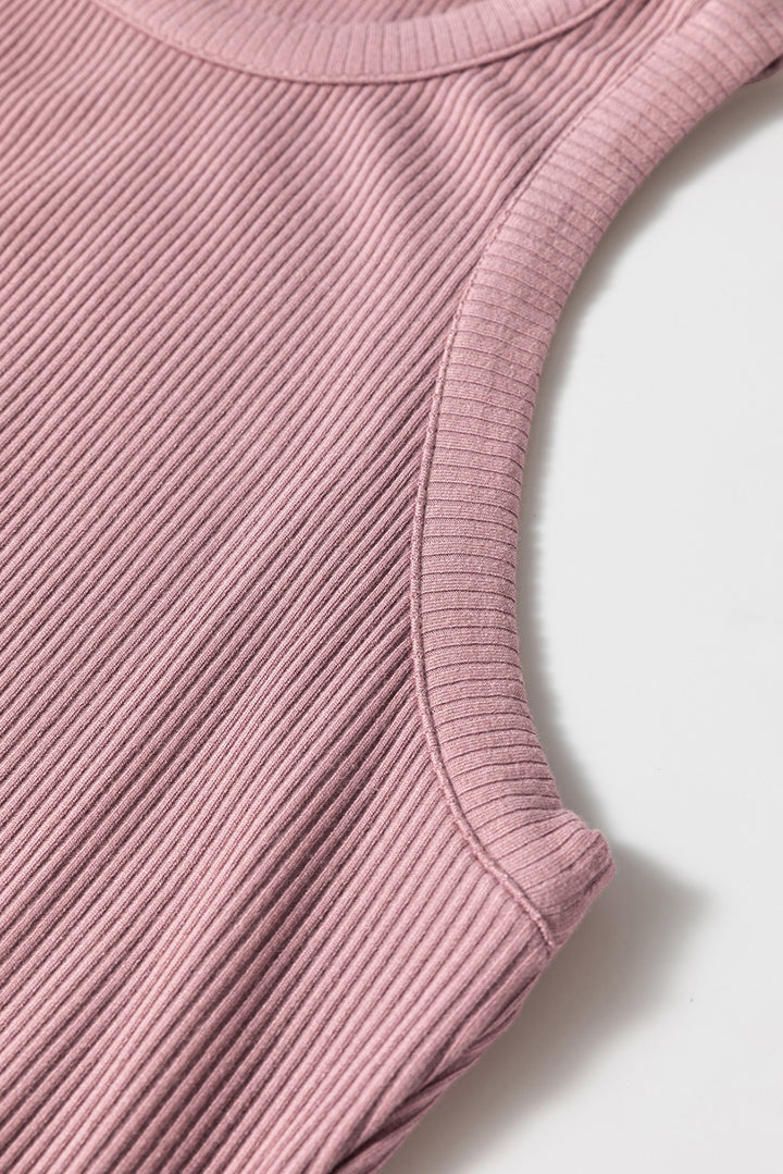Sepia Rose Ribbed Vest Patchwork Tiered Midi Dress with Pockets