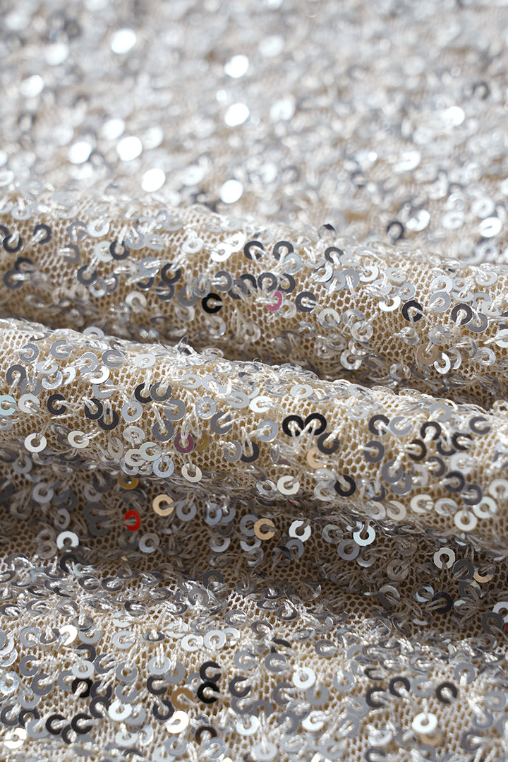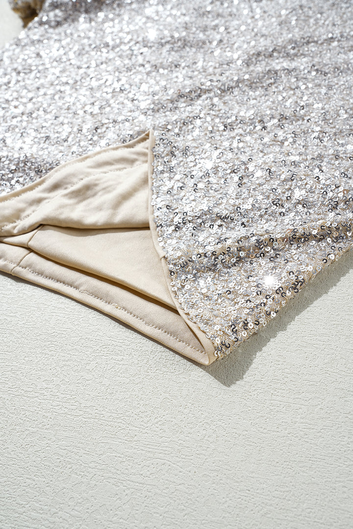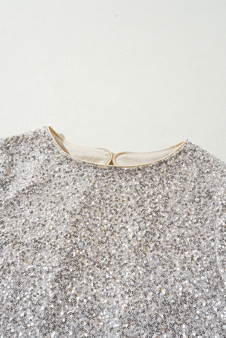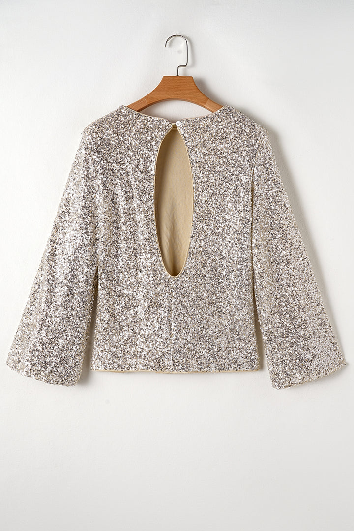 Silvery Sequin Puff Sleeve Cutout Back Blouse