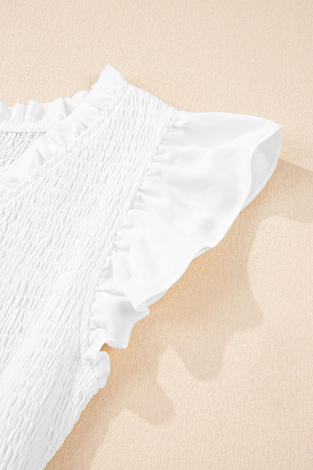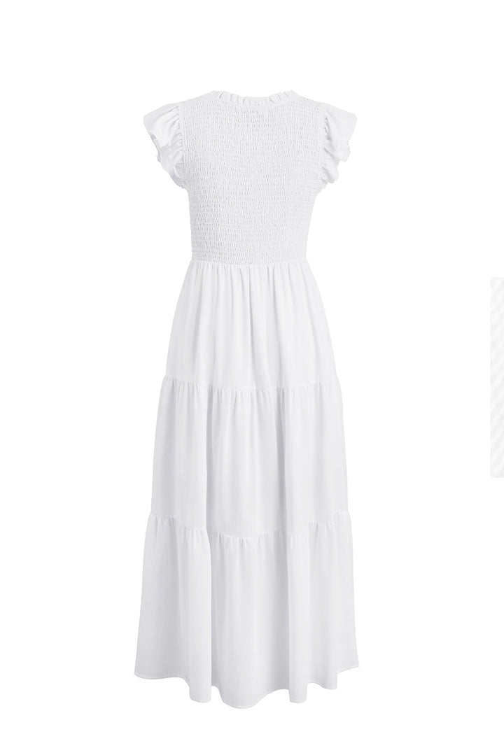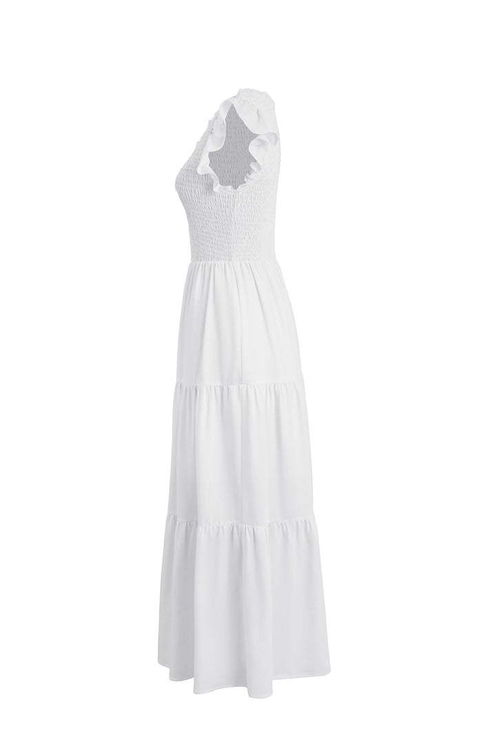 Square Neck Smocked Bodice Flutter Sleeve Maxi Dress