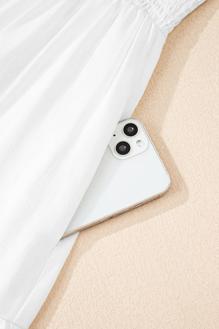 This solid white dress is well-received by minimalists. Summer long dress that has a smocked bodice and a tiered skirt. Made of quality cotton fabric in a soft breezy knit for comfy wear.
