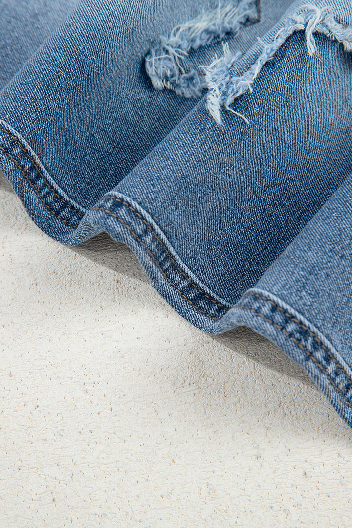 Stone Blue Star Patchwork Cropped Wide Leg High Waist Jeans