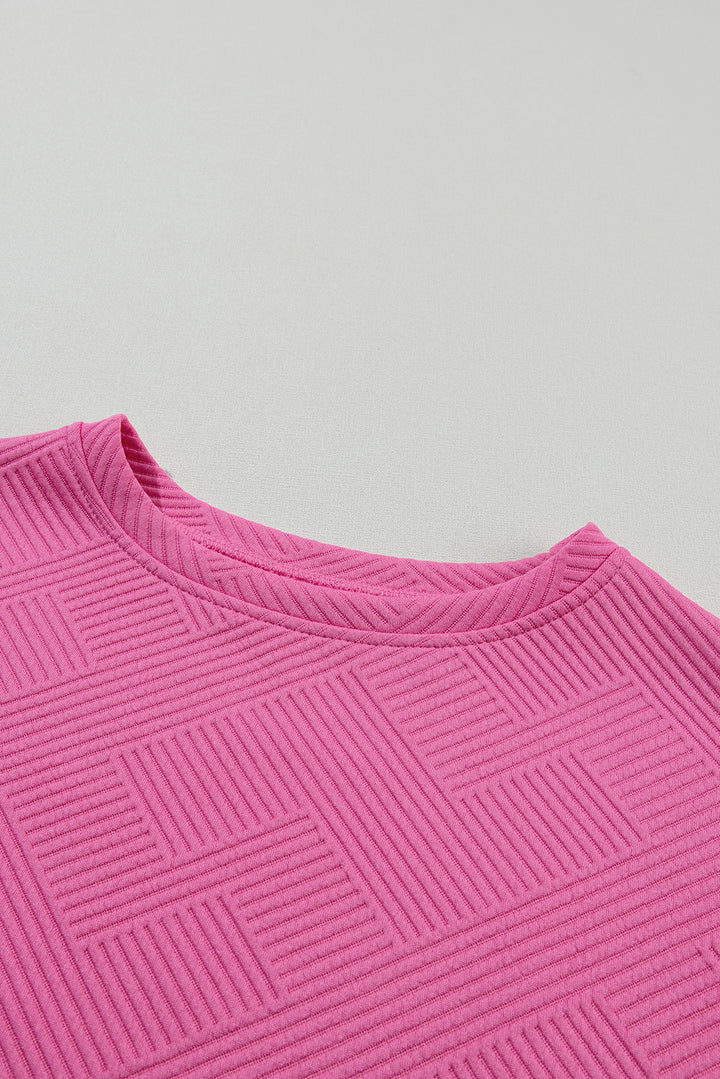 Strawberry Pink 2pcs Solid Textured Drawstring Shorts Set
