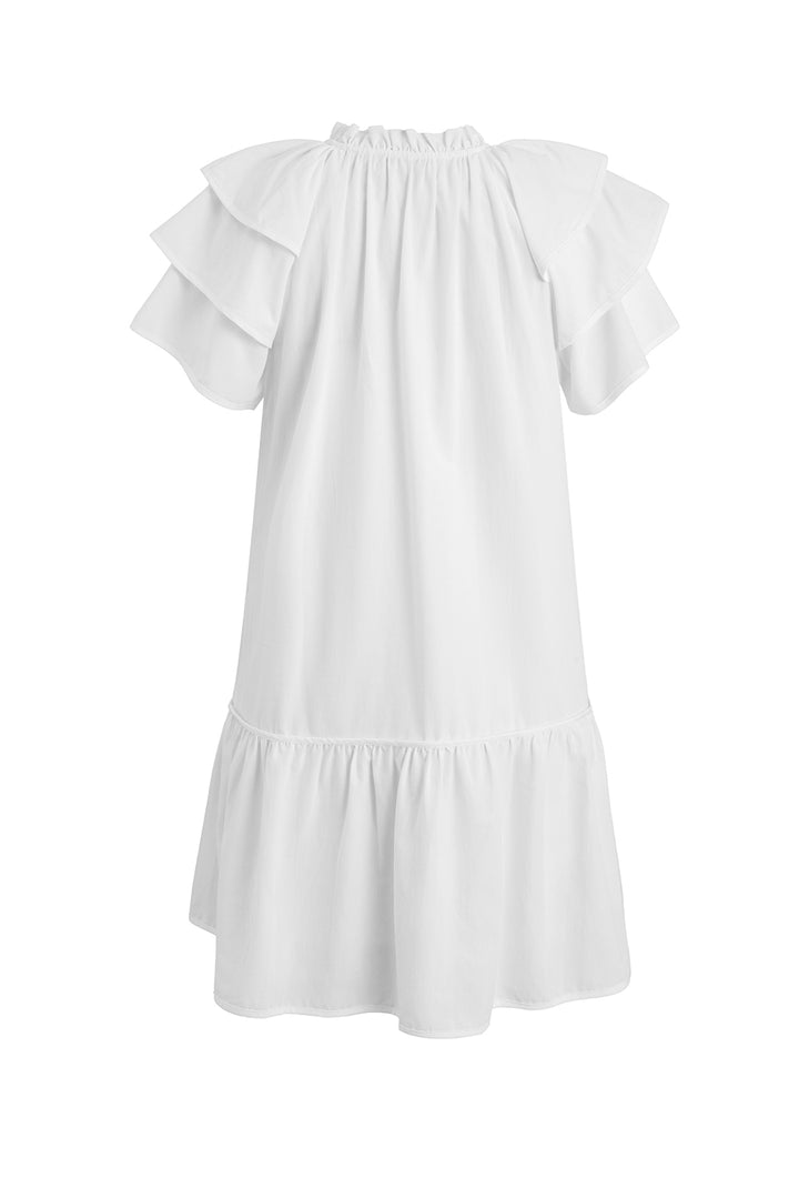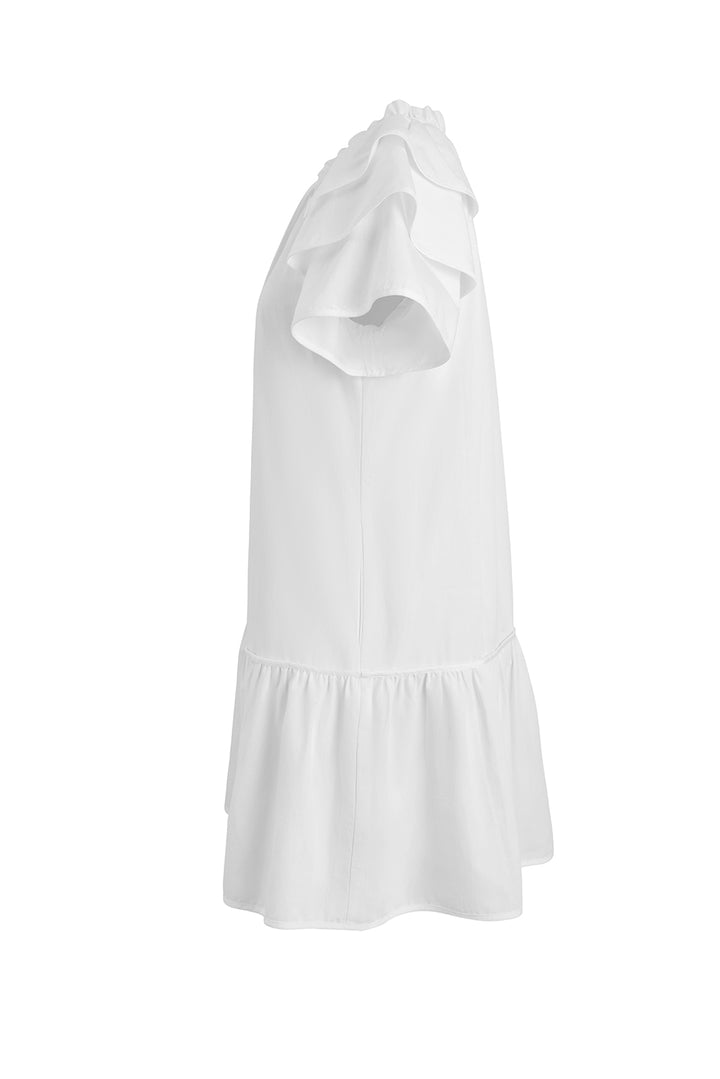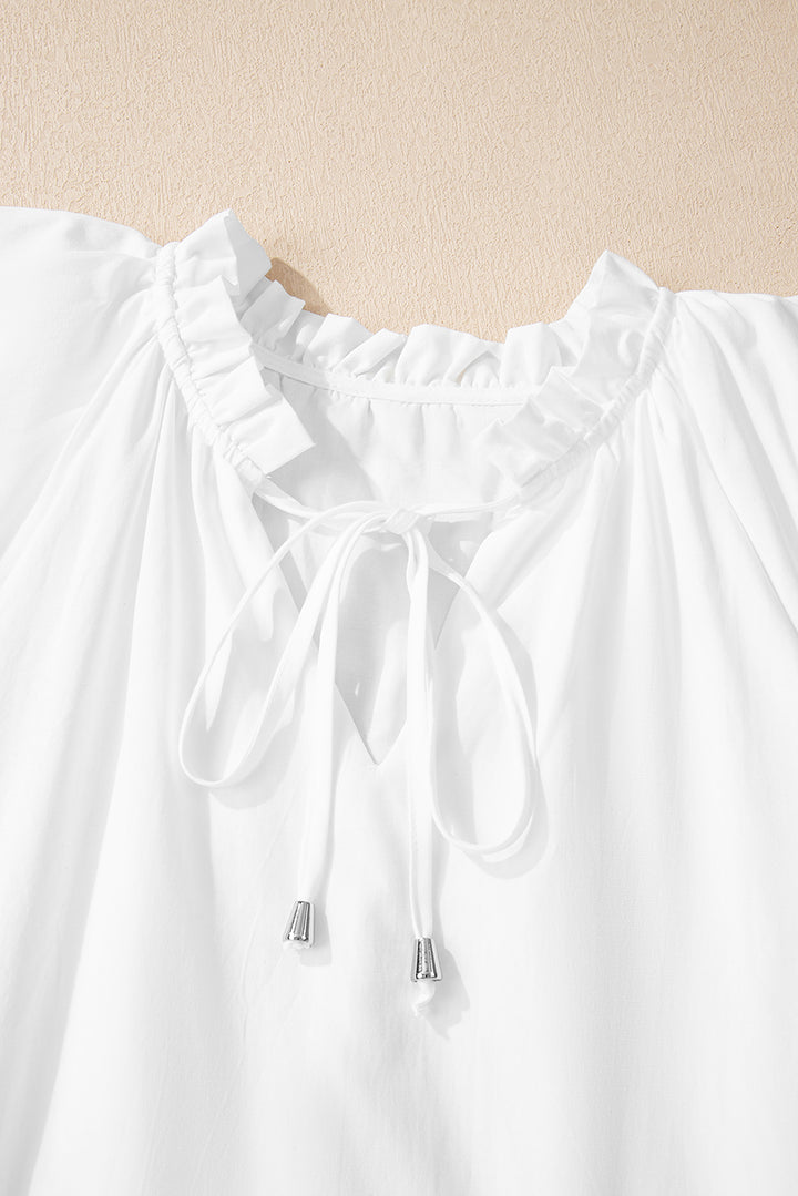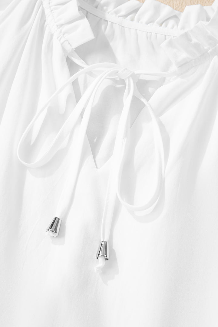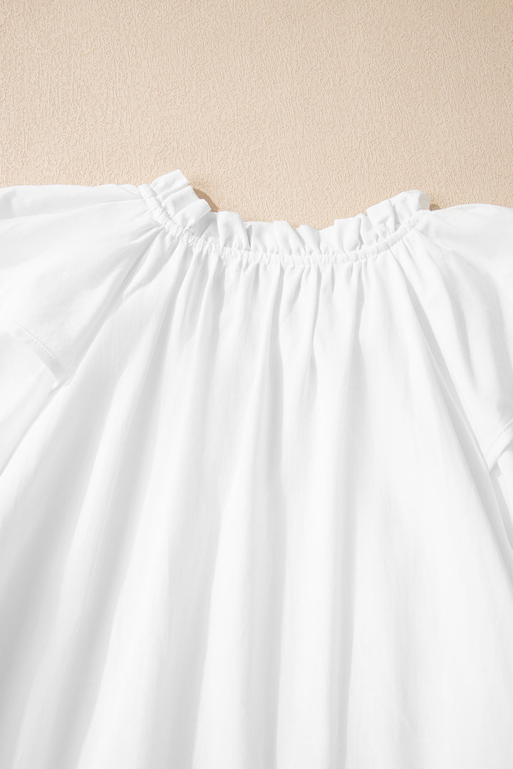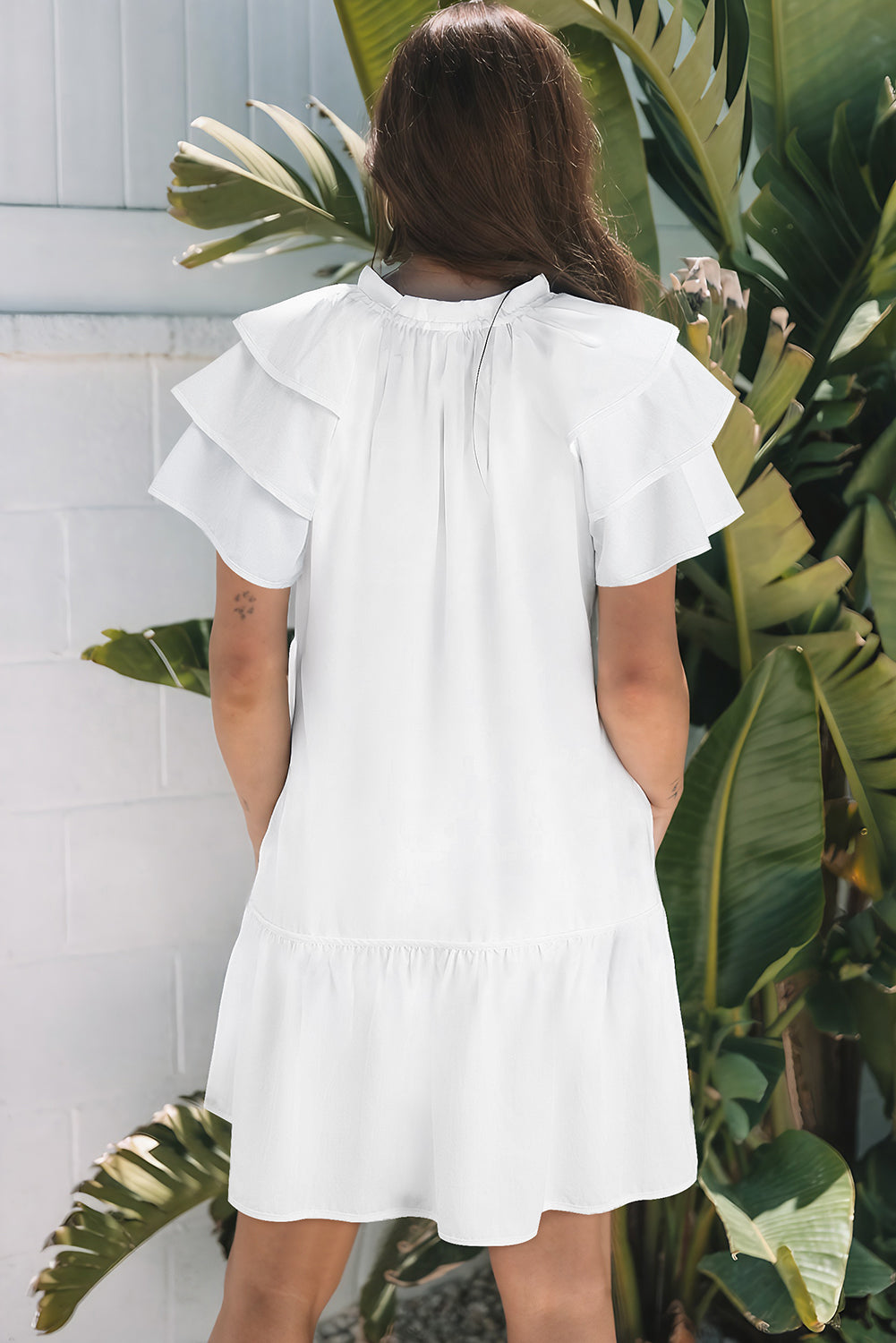 Tied Split Neck Ruffle Tiered Short Sleeve Mini Dress