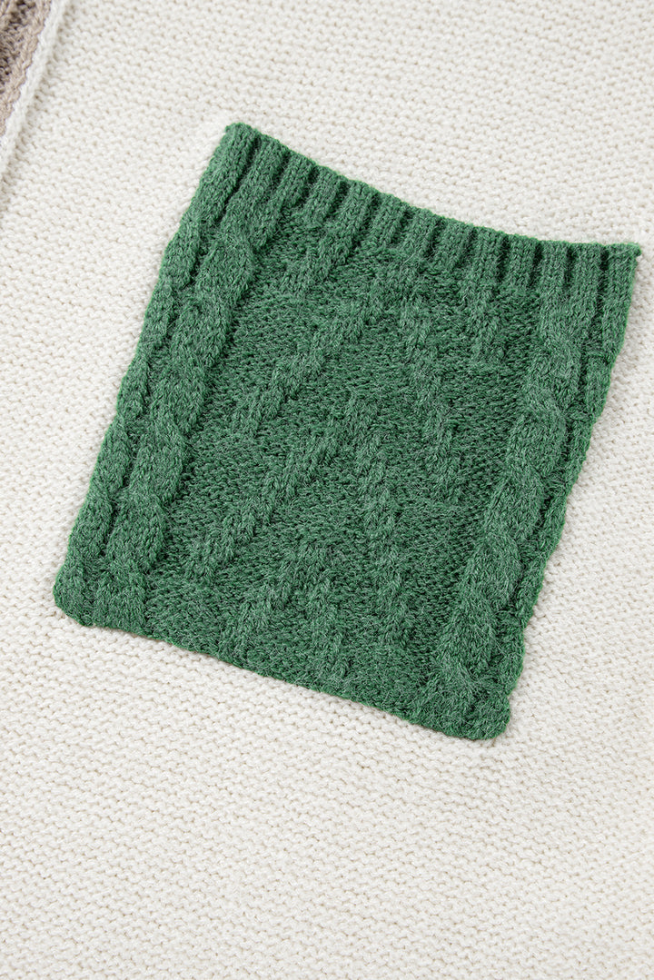 Vineyard Green Colorblock Patched Pocket Drop Shoulder Sweater