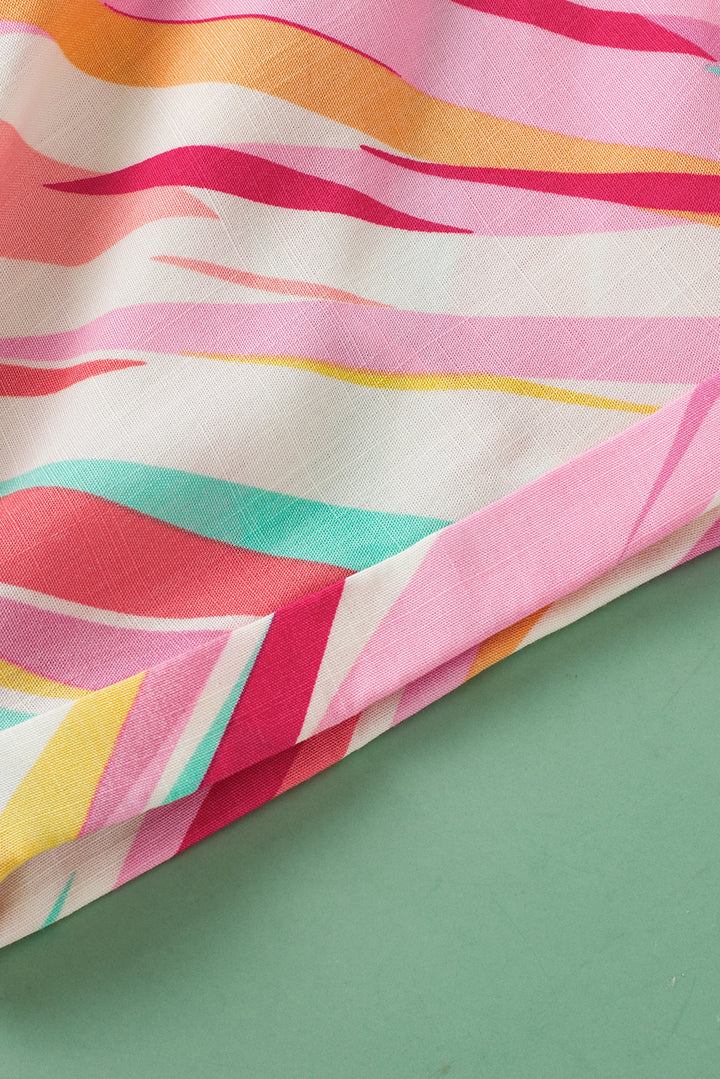 White Abstract Print Short Sleeve Notched Neck Plus Size Top
