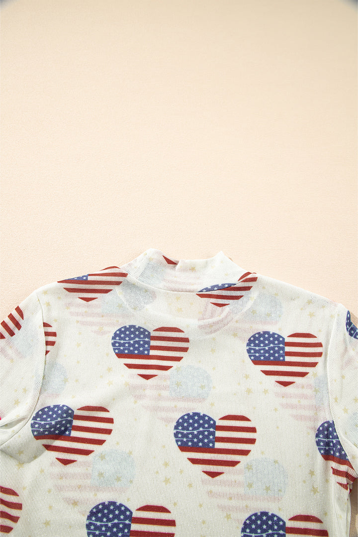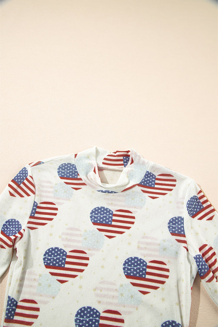 White Americana Glitter Mesh Long Sleeve Bodysuit