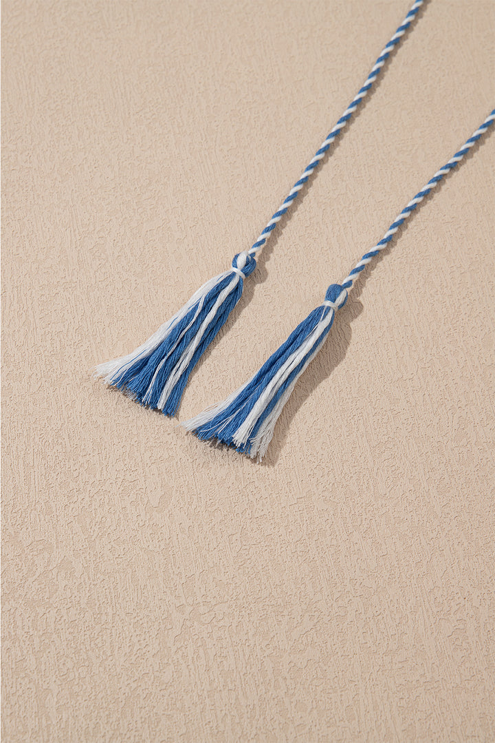 Reminiscent of the flower child era with tassel tie and pin-tuck details.