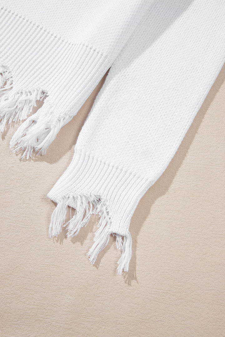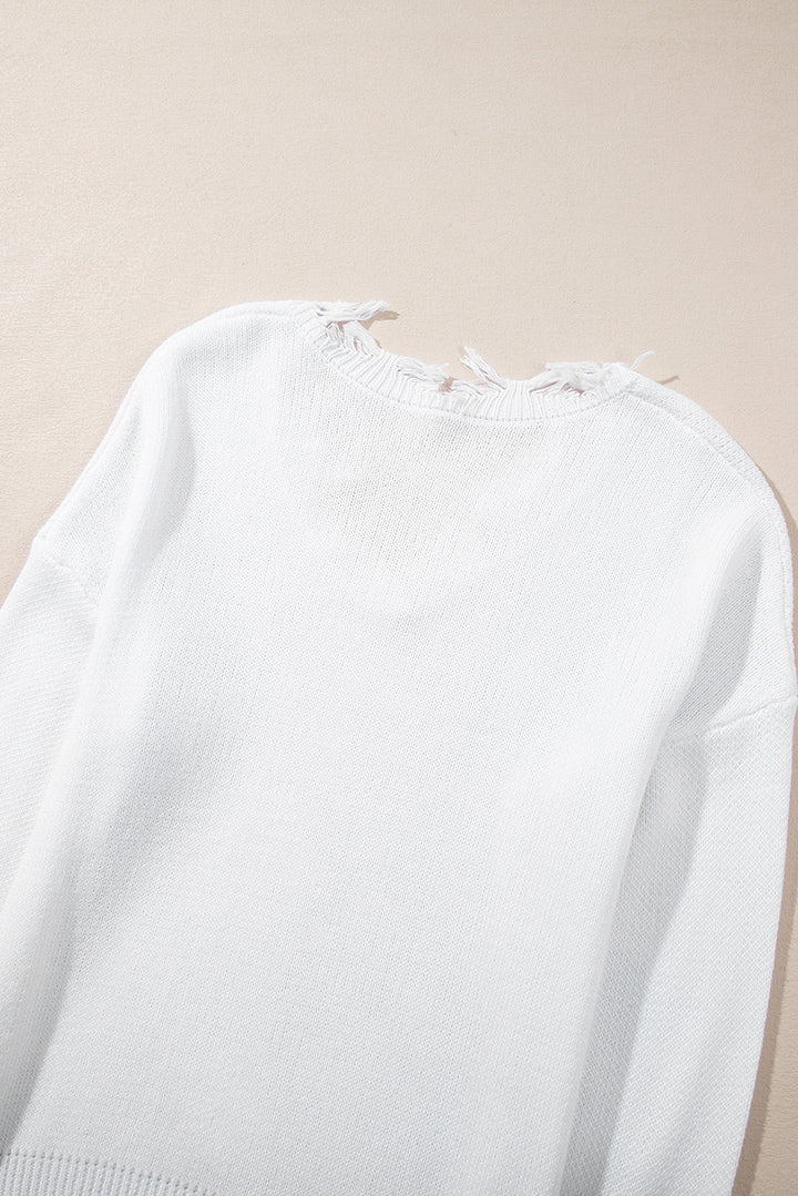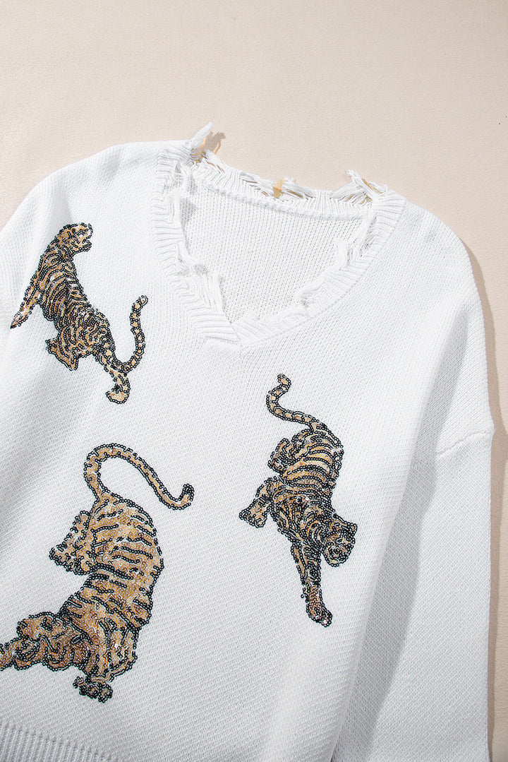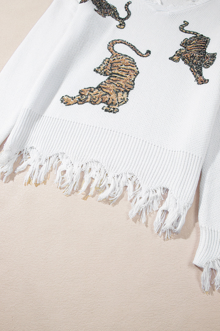 White Frayed Sequin Tiger Sweater