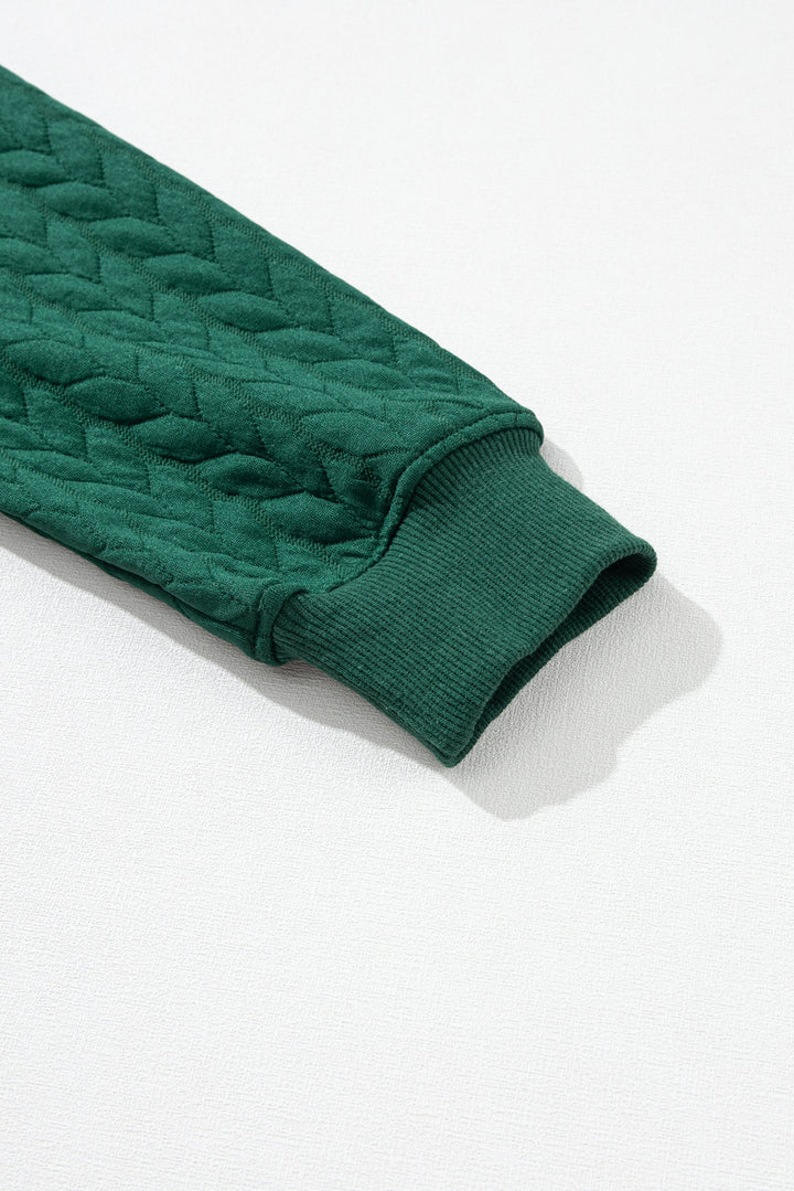 - The cable knit pattern adds a touch of elegance to this casual pullover