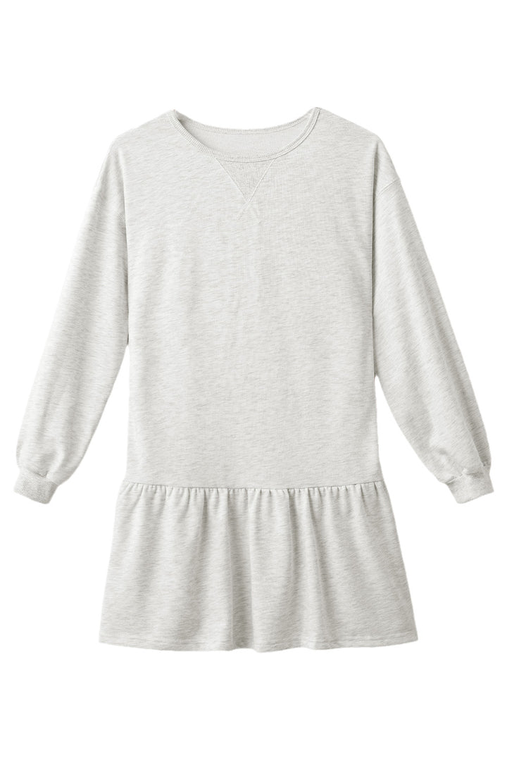 White Solid Color Puff Sleeve Ruffle Hem Mini Dress