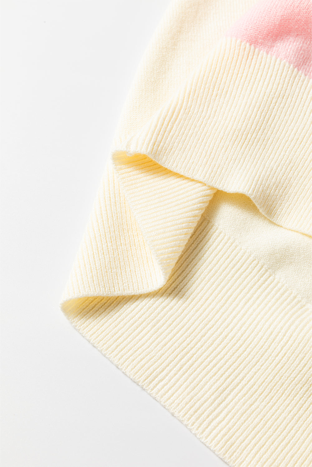 White Stripe Colorful Pattern Button Front Sweater Cardigan